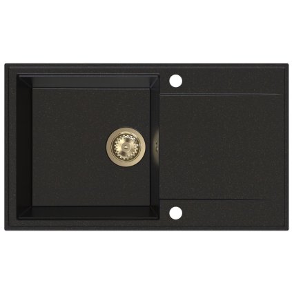 Sink Quality Sink55, kuchyňský granitový dřez 680x460x215 mm, černá se zlatými body, SKQ-SINK.L.1KDO