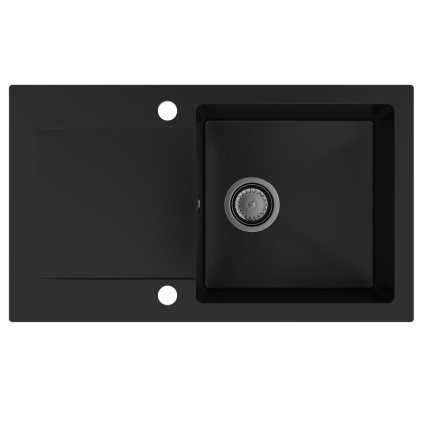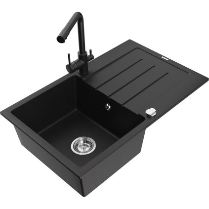 Sink Quality Ferrum, kuchyňský granitový dřez 770x450x190 mm + černý sifon, černá, SKQ-FER.C.1KDO.XB