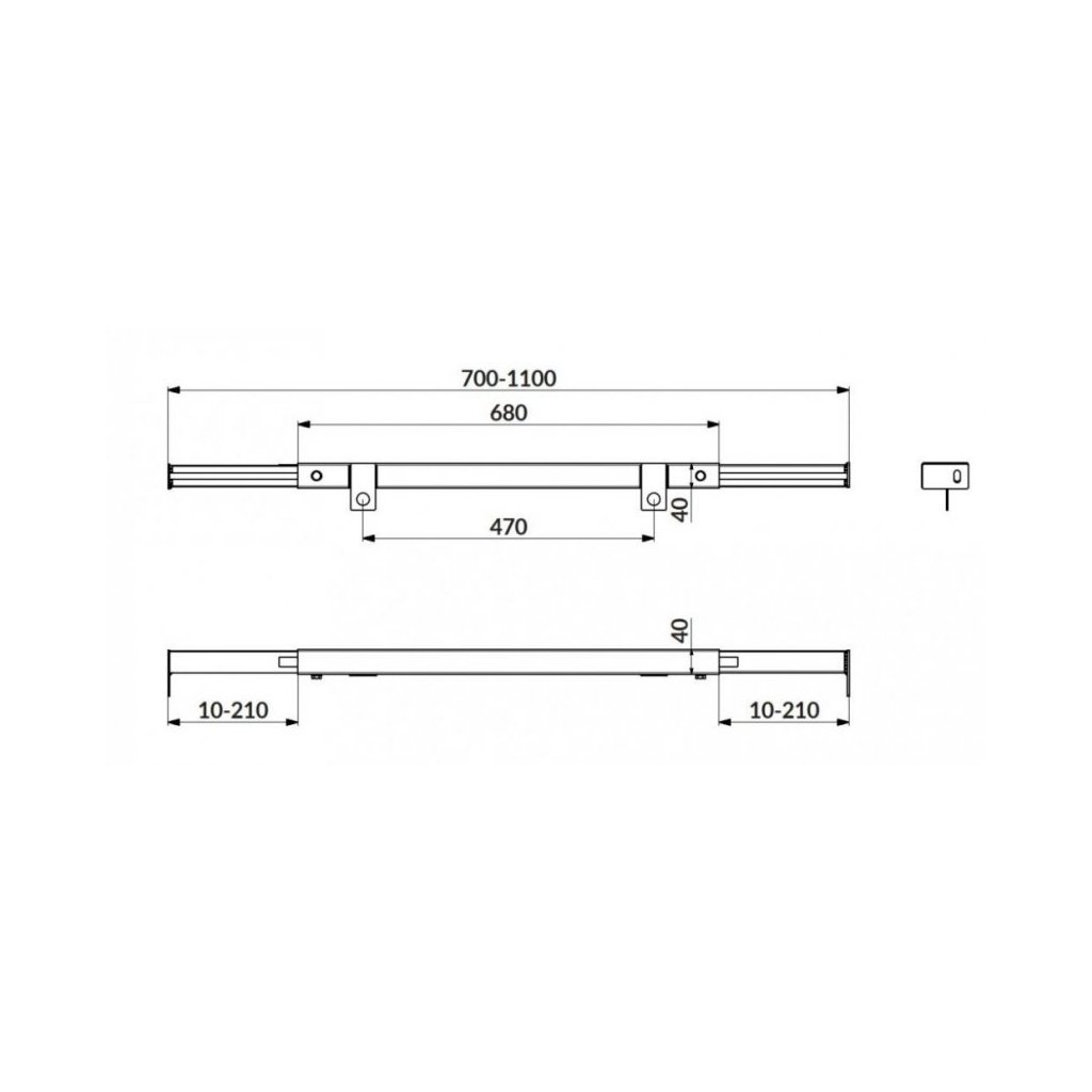 Sada pro upevnění na zeď k Aqua/System série 5 ve specifických podmínkách. U dlouhých a úzkých místností, kde není možné standardní upevnění zadní stěny, umožňuje tato montážní sada upevnit rám na boční stěny dané místnosti. Nastavení šířky instalace: 70-110 cm