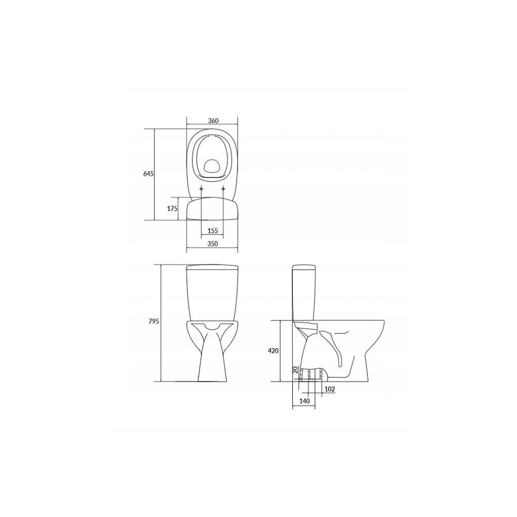 Kompaktní WC ve verzi s vertikálním odtokem as přívodem vody ze spodní části nádrže. Kompaktní sada WC Arteco CleanOn se vyznačuje moderním designem a jedinečnou bílou barvou Cersanit White. Díky inovativní technologii CleanOn se voda dostane na každé místo vnitřního prostoru mísy. Chybějící vnitřní okraj mísy znamená, že v ní není místo pro nečistoty, bakterie a choroboplodné zárodky. Kompaktní WC využívá ekonomický splachovací systém 3/5l. Souprava je dodávána s polypropylenovým sedátkem s pomalým zavíráním.
