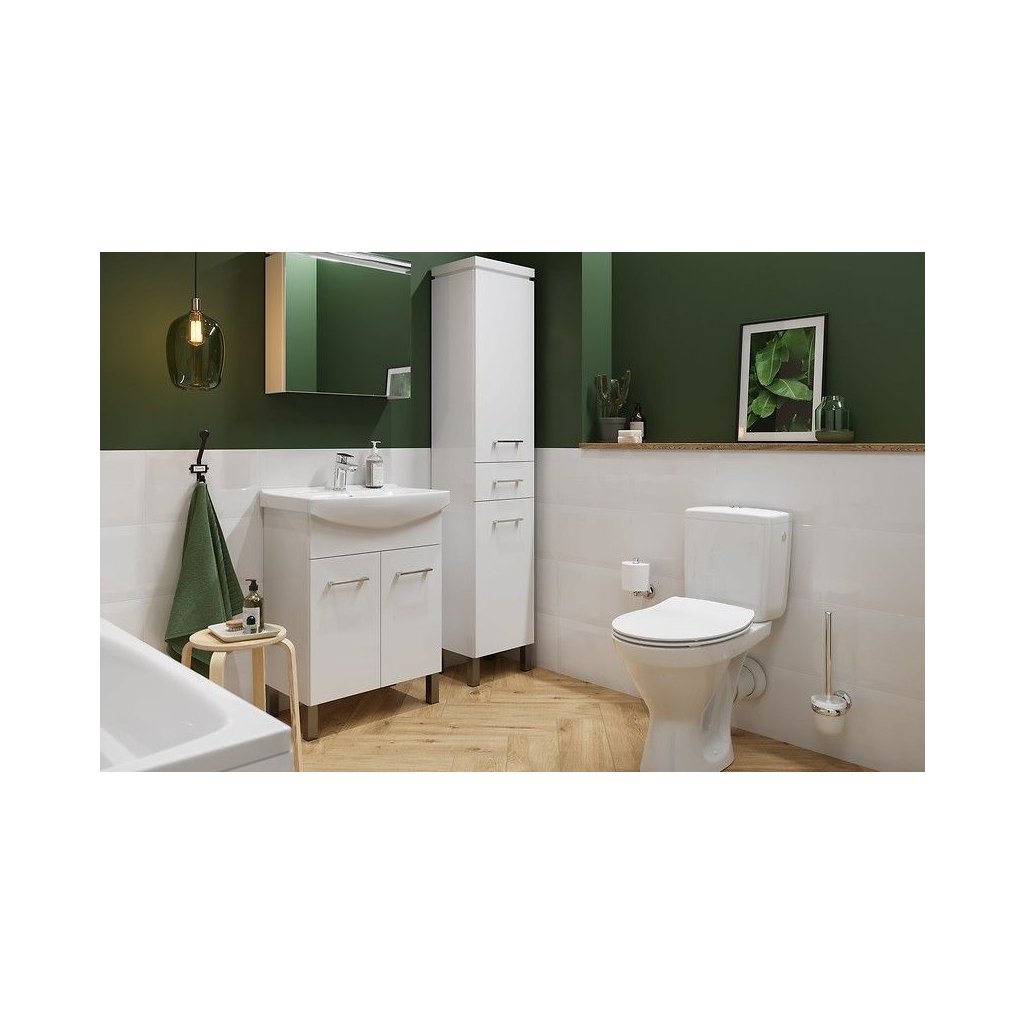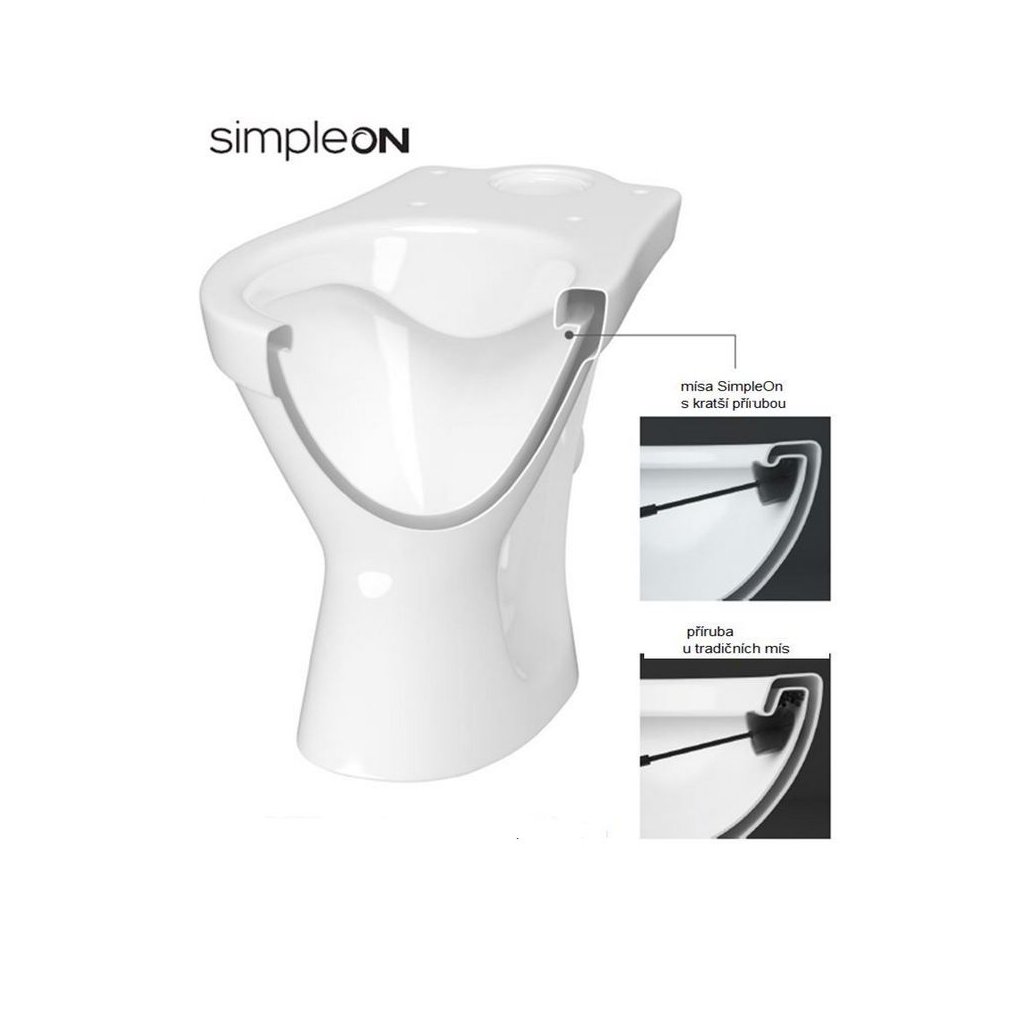 WC kombi Cersania II. SIMPLEON se zadním odpadem, přívod vody z boční části nádrže s úsporným splachovacím systémem 3/6l. Součástí je duroplast antibakteriální SLIM sedátko s pomalým sklápěním (soft-close) a jednoduchým odnětím a upevněním sedátka. WC kombi kolekce Cersania II. je navržena s inovativním profilováním keramiky - Simple On. Tento systém je řešením, které eliminuje obtížně přístupná místa uvnitř kompaktního prostoru, čímž usnadňuje jeho čištění. SimpleOn zahrnuje zmenšení límce a ponechání jen v zadní části mísy. Pro toto řešení je charakteristický tvar keramického „jazyku“, ze kterého voda vytéká. Voda odtékající navíc proudí z obou stran v opačných směrech a setkává se pouze v přední části mísy. Díky tomu je celý interiér důkladně umytý a očištěný. To vám umožní zvýšit hygienu v koupelně přesněji než v přírubových toaletách, likvidaci vodního kamene, bakterií, sedimenty a případné nečistoty uvnitř toalety.