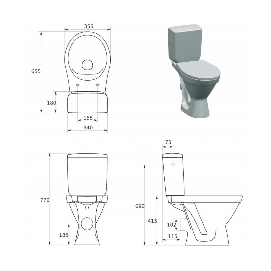 Kompaktní toalety z kolekce Cersania jsou více než jen obyčejná sanitární keramika. Byly navrženy s inovativním profilováním keramiky SimpleOn. Tento systém je řešením, díky kterému byla odstraněna těžko dostupná místa uvnitř záchodu, čímž se usnadnilo jeho čištění. SimpleOn spočívá ve snížení límce a ponechání ho jen v zadní části mísy. Charakteristickým znakem tohoto roztoku je tvar keramického profilu "jazyka", ze kterého proudí voda. A co víc, tekoucí voda teče z obou stran, v opačných směrech, a potýká se jen v přední části mísy. Díky tomu je celý interiér důkladně umytý a vyčištěný. To vám umožní zvýšit hygienu v koupelně přesněji než v případě přírubových toalet, odstranění šupin, bakterií, usazenin a jakýchkoli nečistot uvnitř toalety. Kompakt používá 3/6 l splachovací systém. Prezentovaný výrobek je ve verzi s horizontálním odtokem, přizpůsobeným pro přívod vody ze strany nádrže. Cena se vztahuje na celou sadu, tj. kompaktní misku s nádrží, ventily a montážní soupravou. Souprava obsahuje exkluzivní pomalu padající duroplastovou desku, která je vybavena jednoduchým systémem odstraňování.
