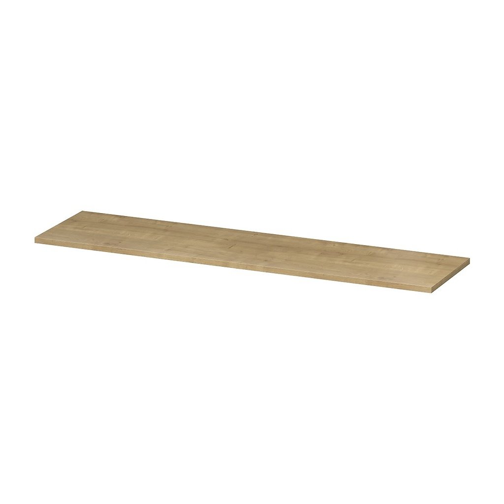 Pracovní deska pro spojení s podpultovým nábytkem, na který můžeme namontovat umyvadlo nebo dát šikovné drobnosti a kosmetiku. Vrchní část je vyrobena z MDF v barvě dubu.