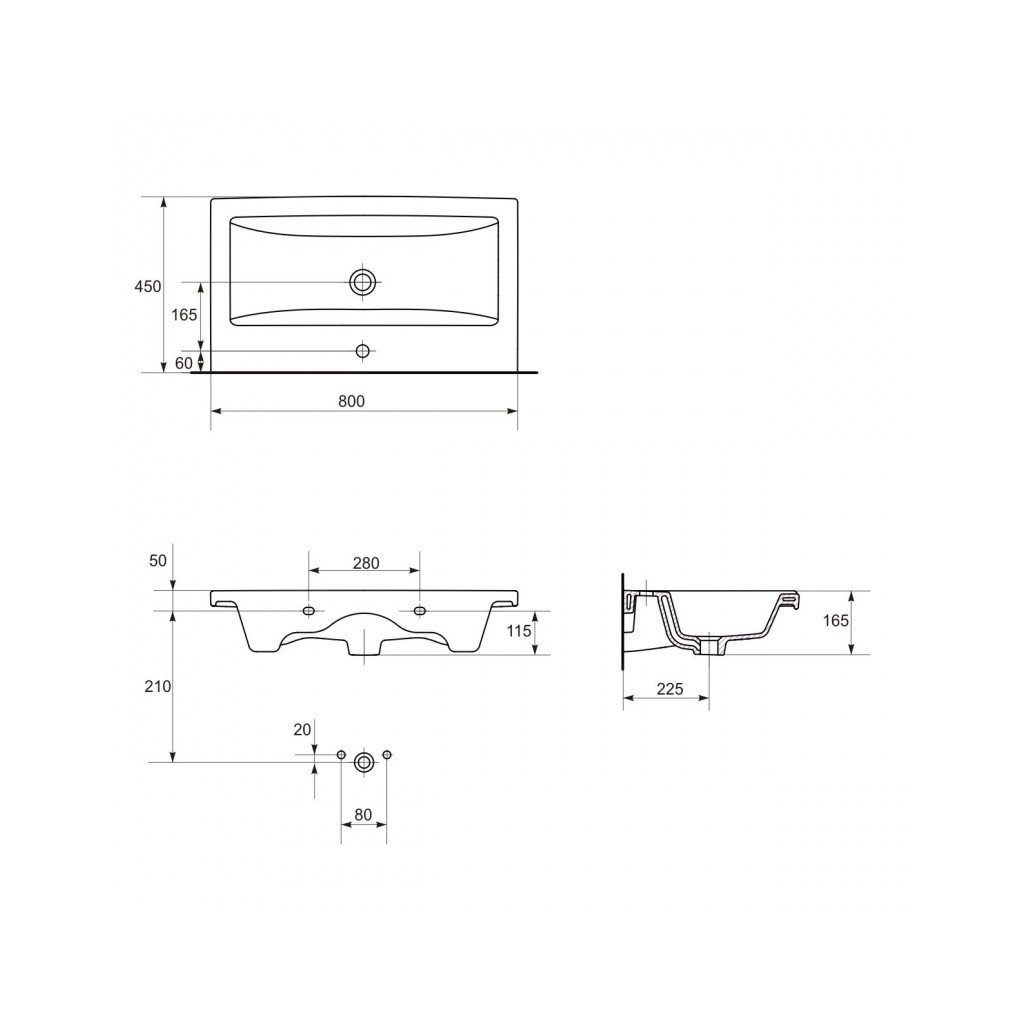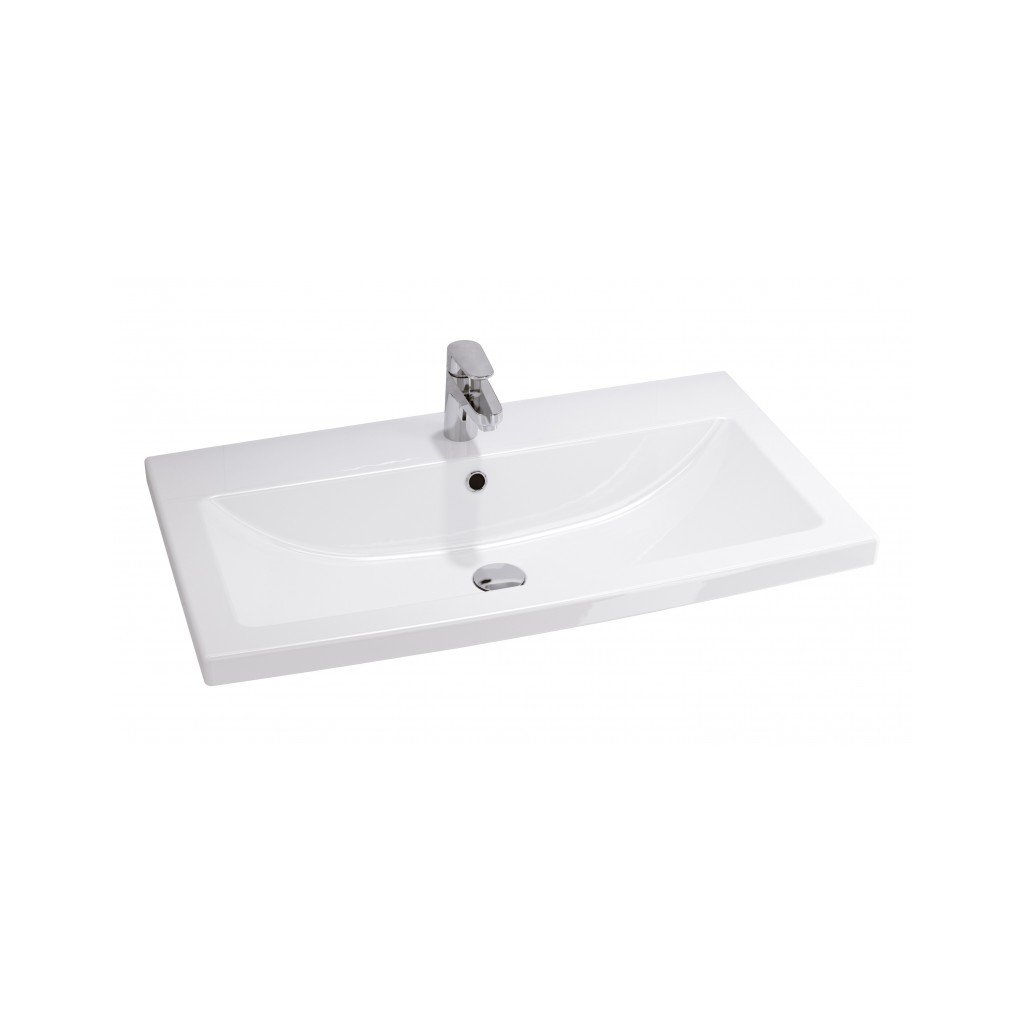 Jedná se o obdélníkové keramické umyvadlo, zabudované v desce. Je vybaveno symetricky umístěným otvorem pro baterii a přepadový otvor.
