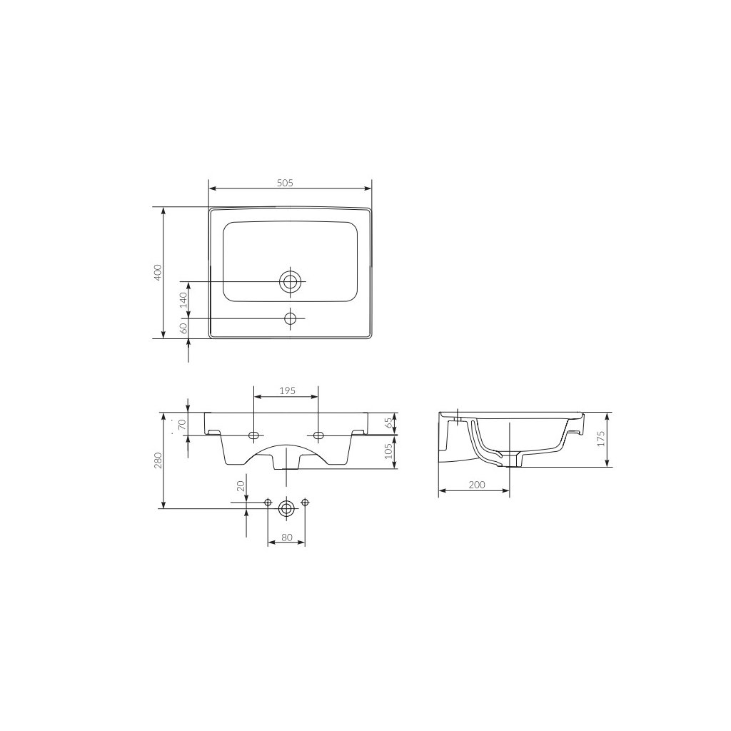 - Keramická umyvadlo s otvorem pro baterii a přepadovým otvorem