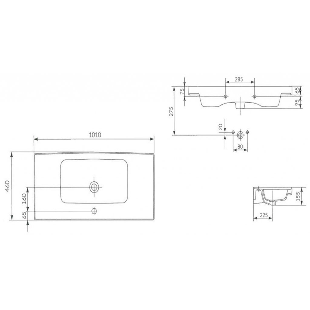 Nábytkové umyvadlo CREA 100 s přepadem a otvorem pro armaturu.