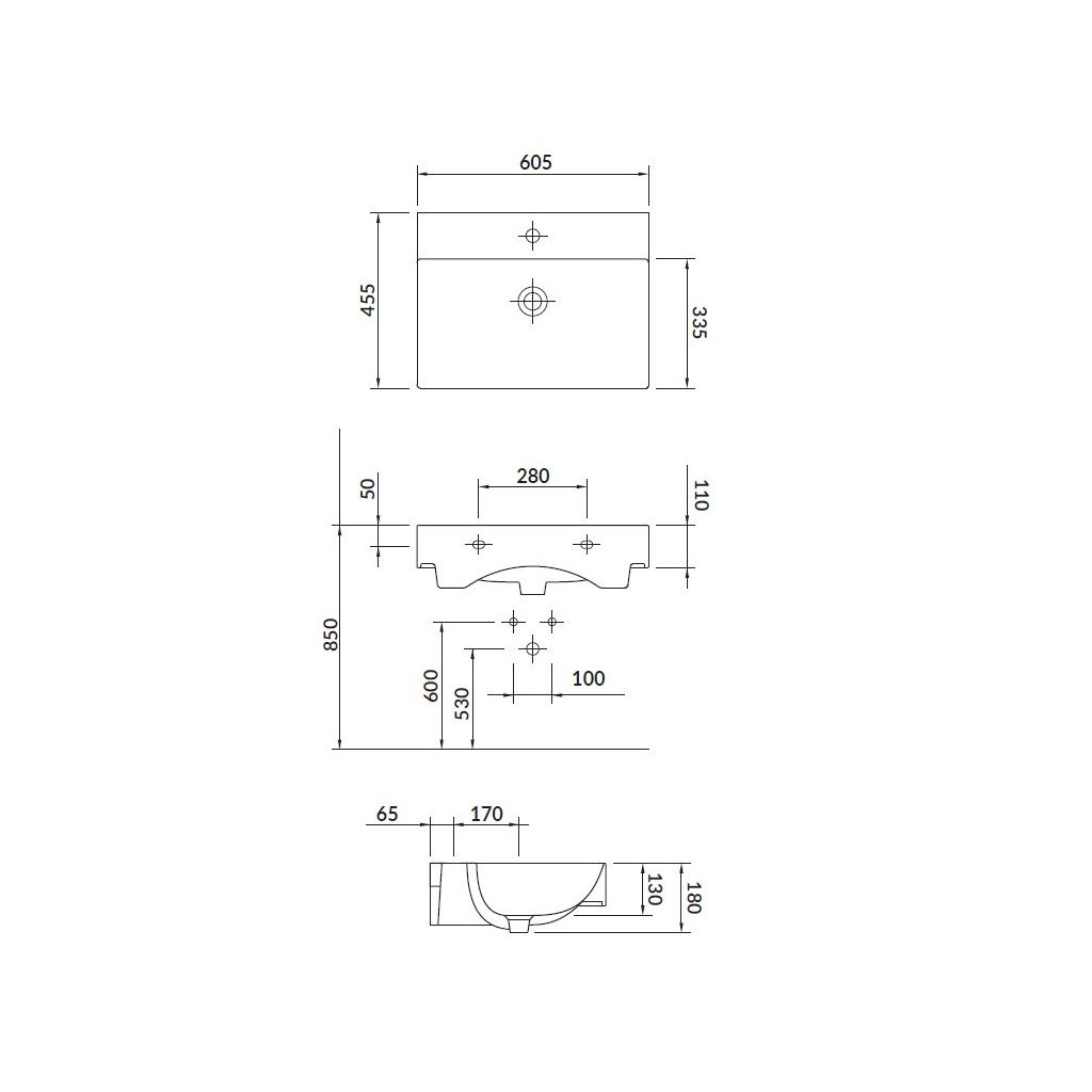 poznámka: nabízené umyvadlo se prodává bez sifonu, výpusti a baterie (možno dokoupit z naší široké nabídky)