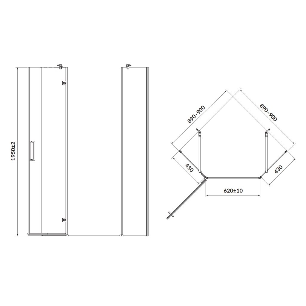 Cersanit Jota, 5-úhelníkový sprchový kout 90x90x195 cm, levé dveře, 6mm čiré sklo, černý profil, S160-016