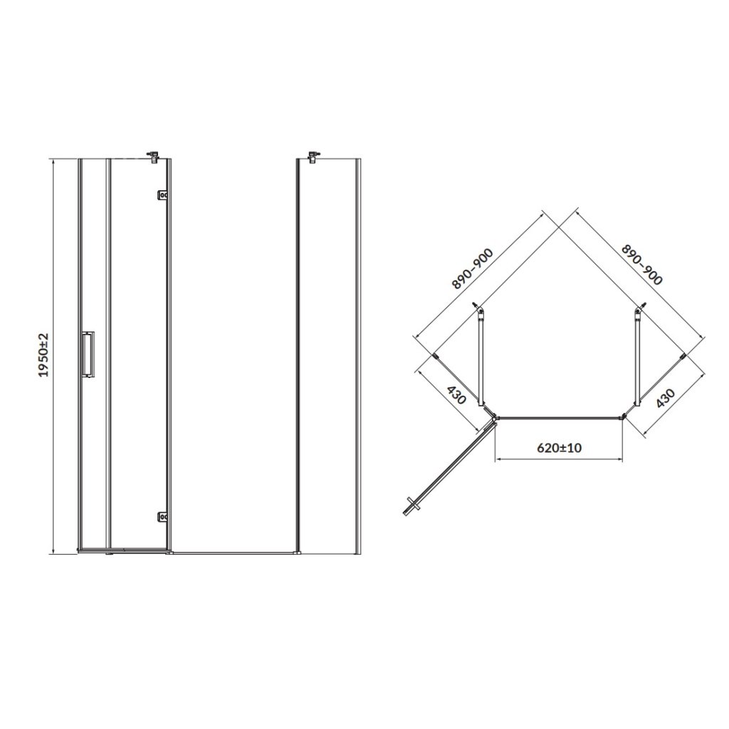 Cersanit Jota, 5-úhelníkový sprchový kout 90x90x195 cm, levé dveře, 6mm čiré sklo, chromový profil, S160-014