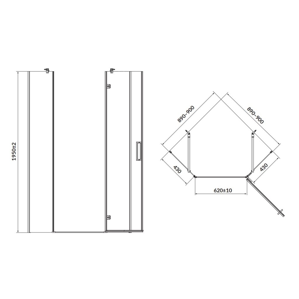 Cersanit Jota, 5-úhelníkový sprchový kout 90x90x195 cm, pravé dveře, 6mm čiré sklo, chromový profil, S160-013