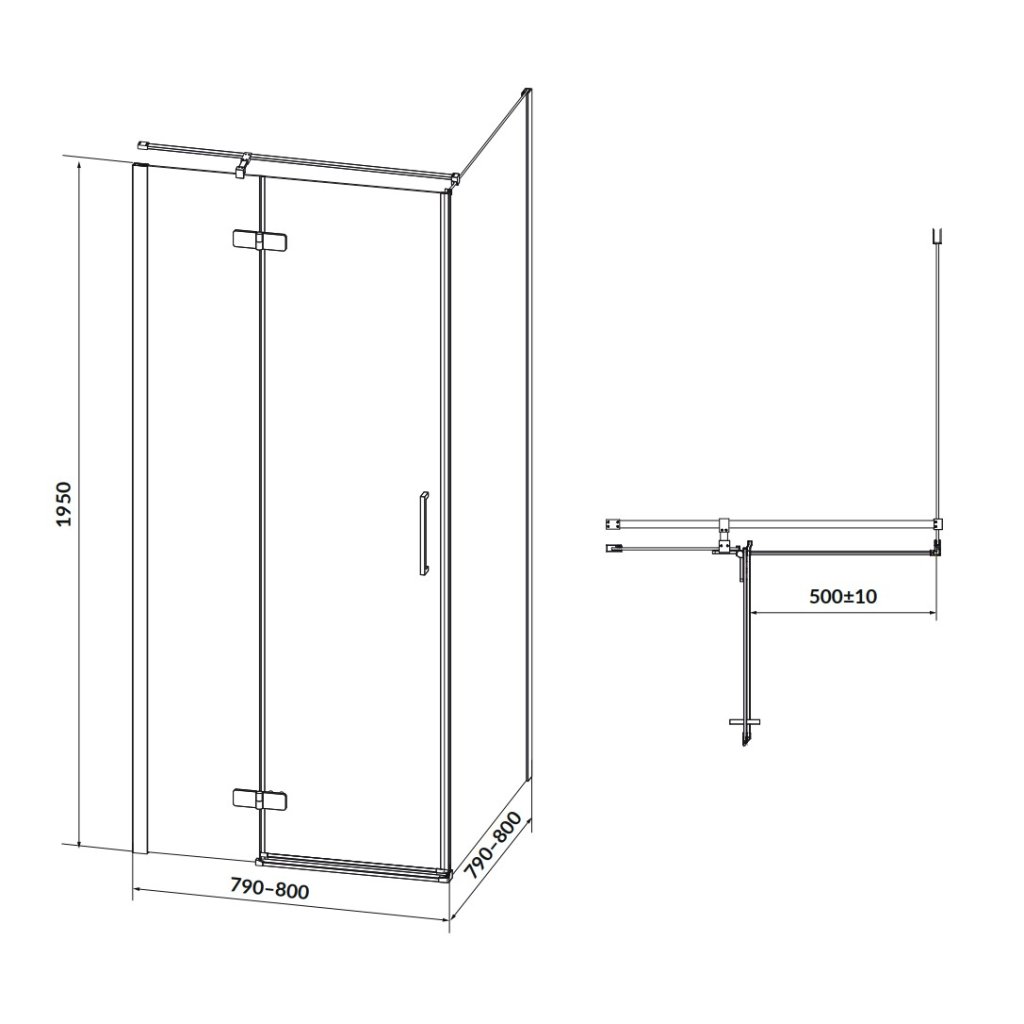 Cersanit Jota, rohový sprchový kout 80 (dveře levé) x 80 (stěna) x 195, 6mm čiré sklo, chromový profil, S160-005