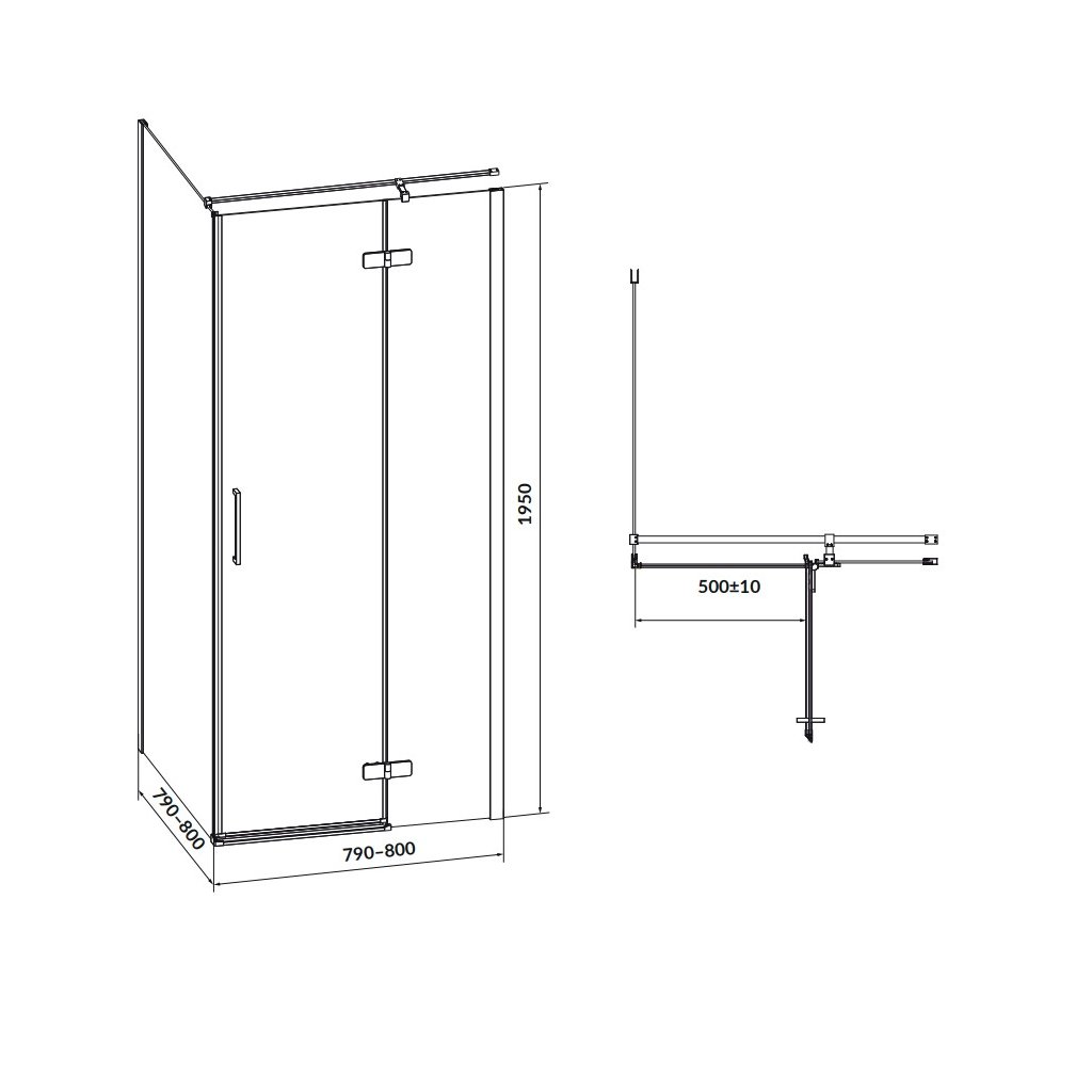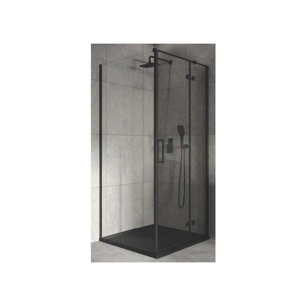 Cersanit Jota, rohový sprchový kout 80 (dveře pravé) x 80 (stěna) x 195, 6mm čiré sklo, černý profil, S160-008