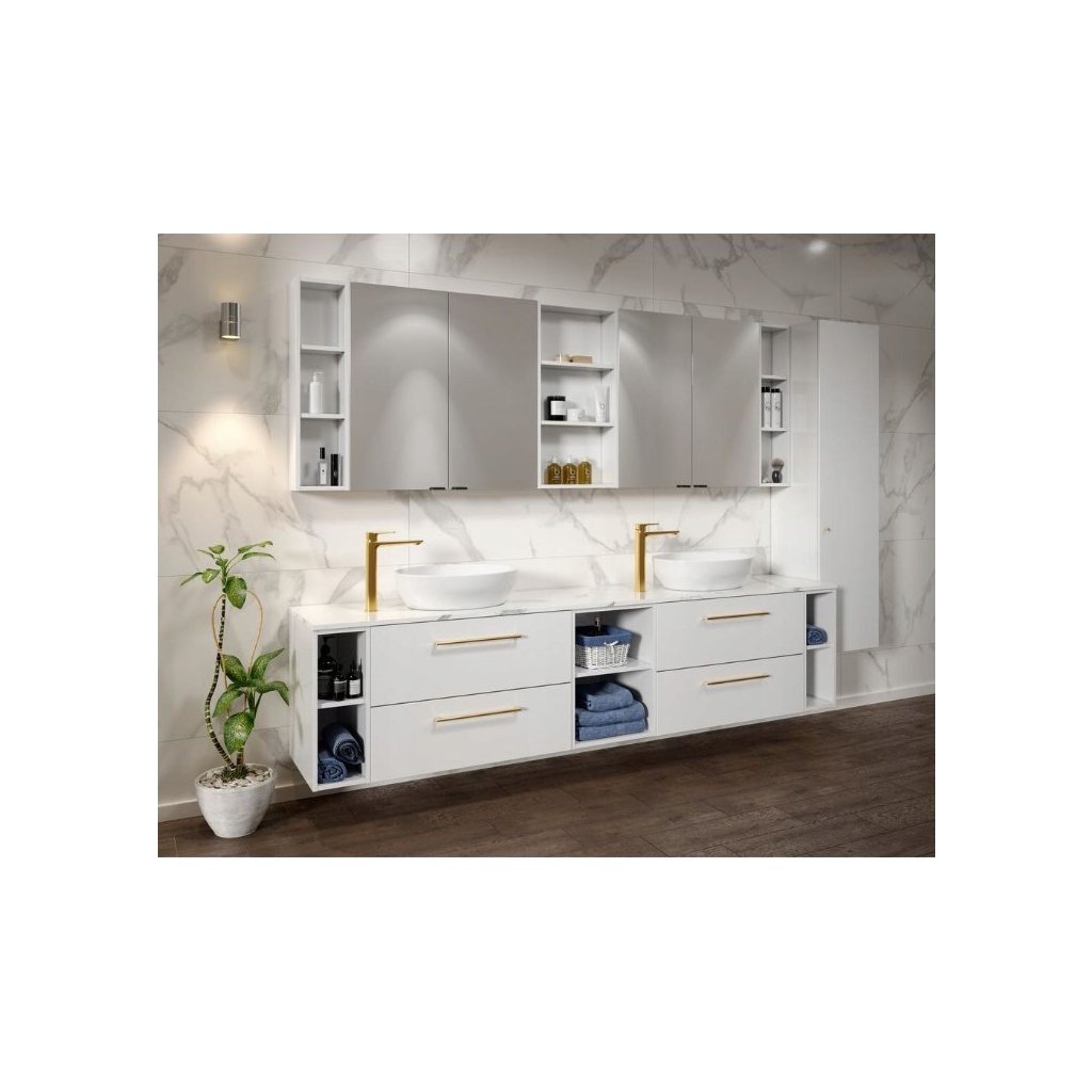 Deska v koupelně je multifunkční řešení, kde si všechny doplňky a kosmetika používané během každodenní toalety najdou své místo. Použití technologie AQUASAFE v deskách z kolekce LARGA je činí odolnými (zvýšenou odolností vůči vlhkosti) a funkčními. K dispozici v 7 velikostech a až v pěti barvách.