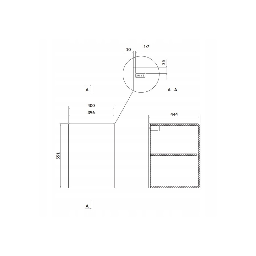 Cersanit Larga, modulová spodní závěsná skříňka 40x55x44 cm, bílá lesklá, S932-087