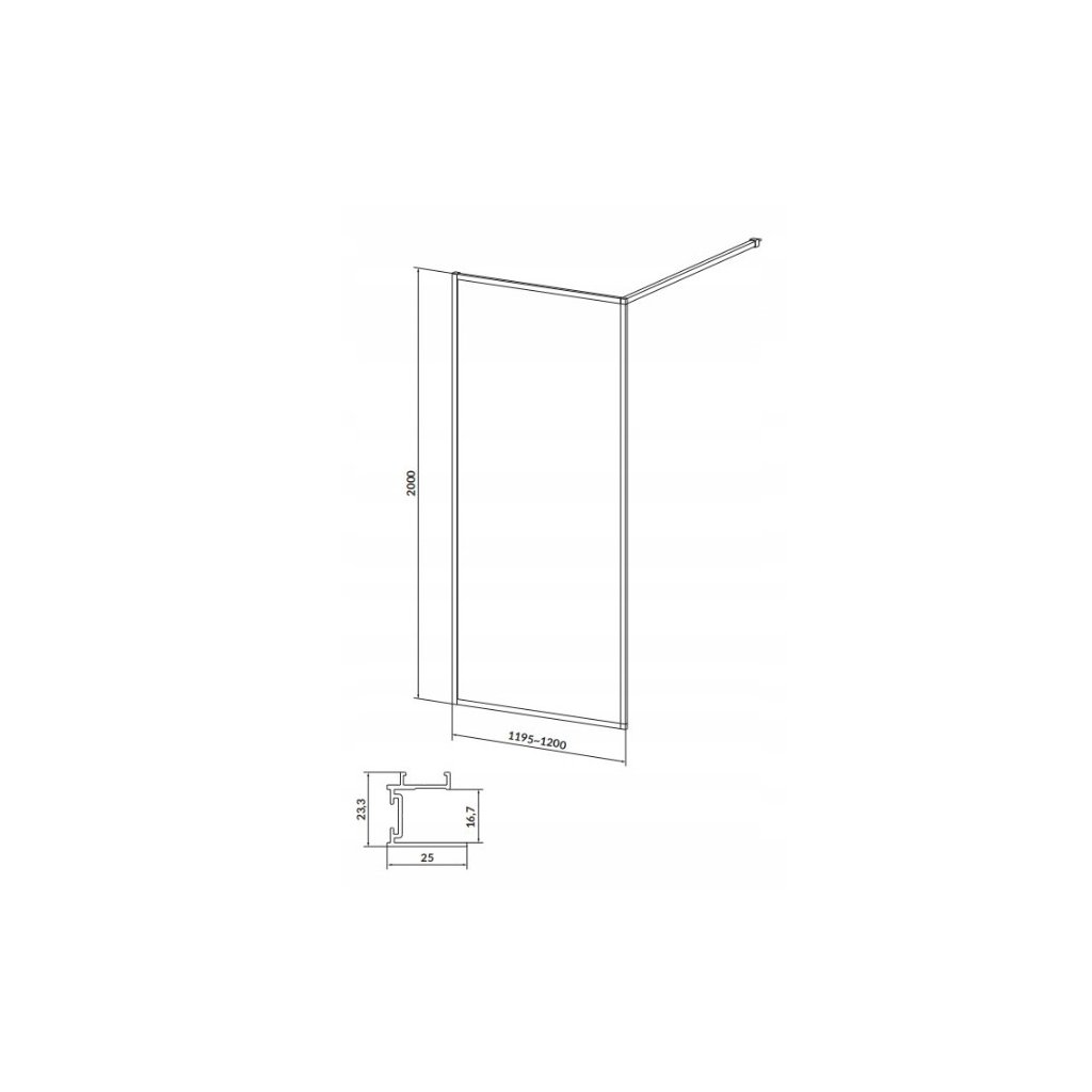 Cersanit Larga, Walk-In sprchová zástěna 100x200 cm, 8mm průhledné sklo, černý profil, S932-139
