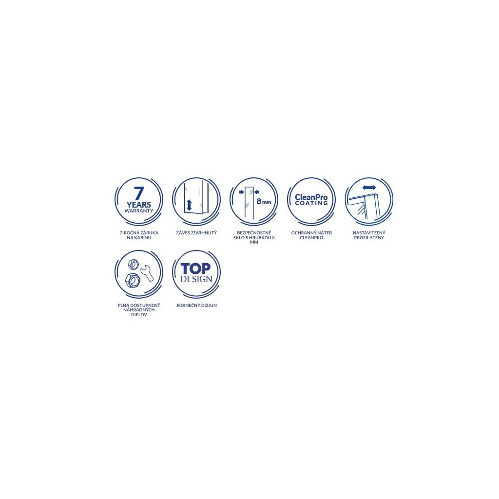 - 8 mm silné tvrzené bezpečnostní sklo zajišťuje bezpečnost během používání kabiny