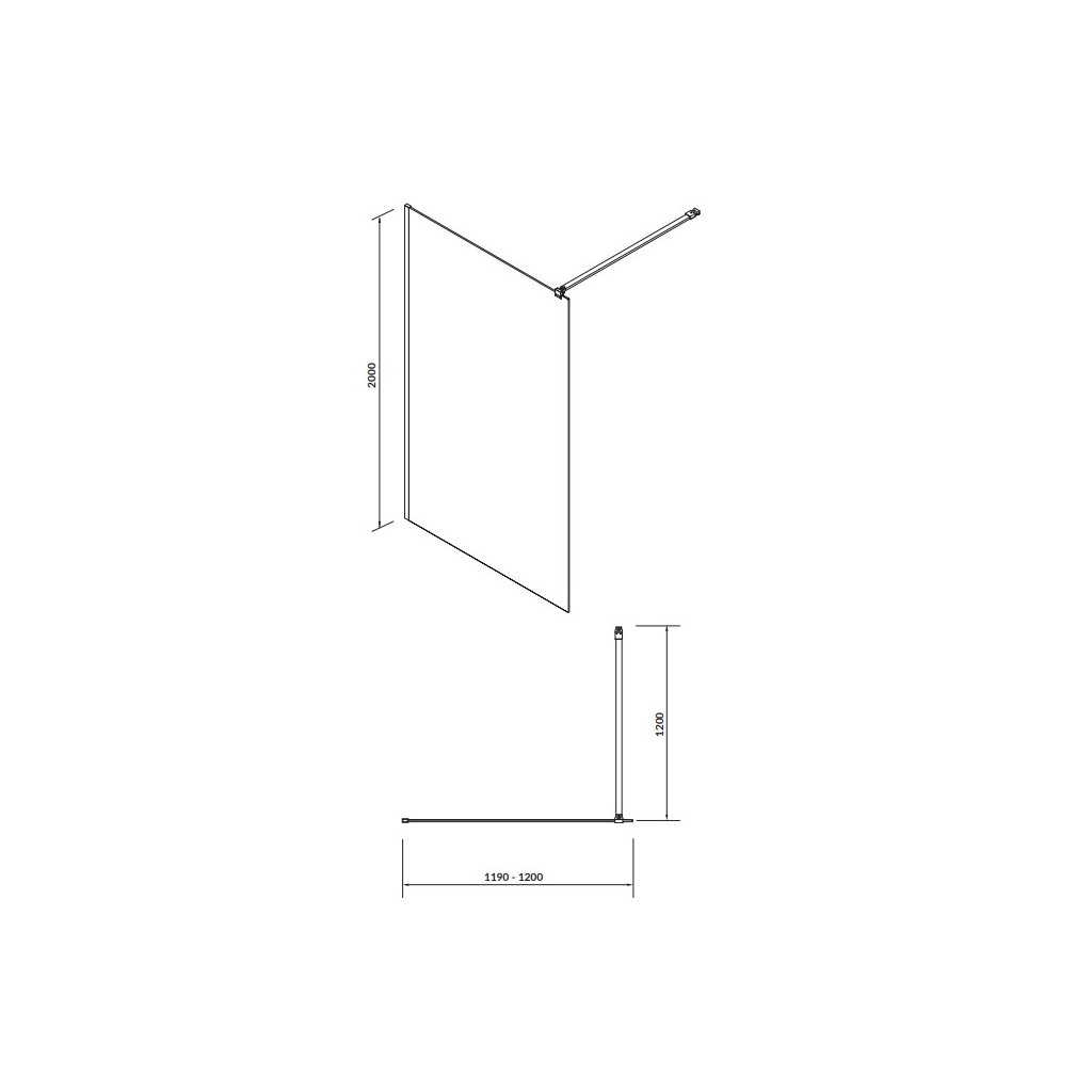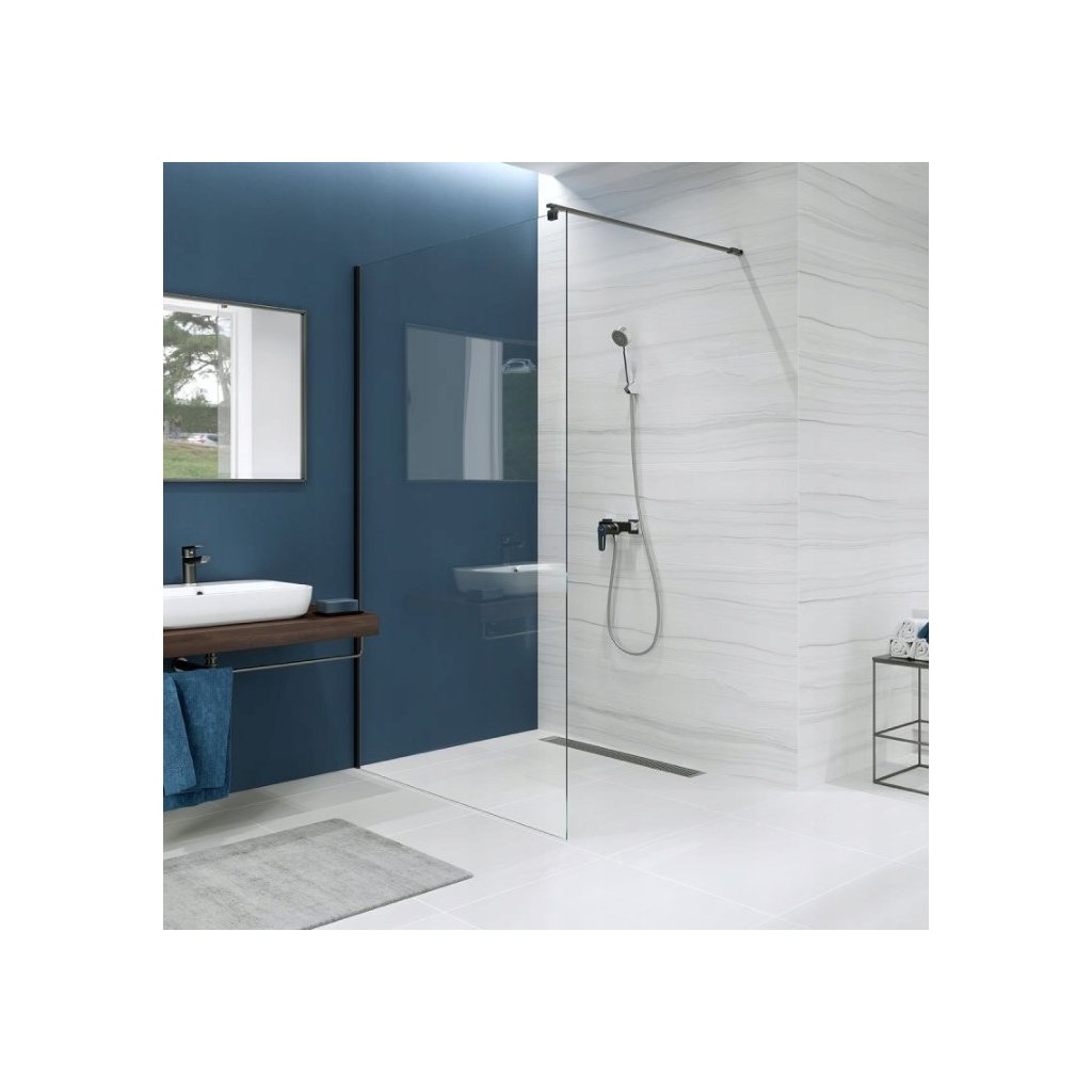 Cersanit Mille, sprchová zástěna typu Walk-In 120x200 cm, 8mm čiré sklo, černý profil, S161-004