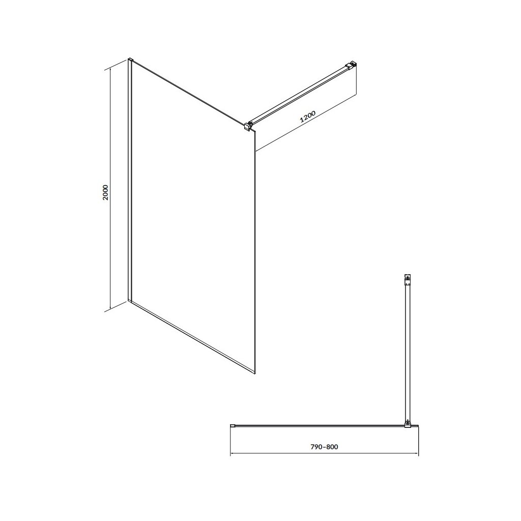 Cersanit Mille, sprchová zástěna typu Walk-In 80x200 cm, 8mm čiré sklo, černý profil, S161-007