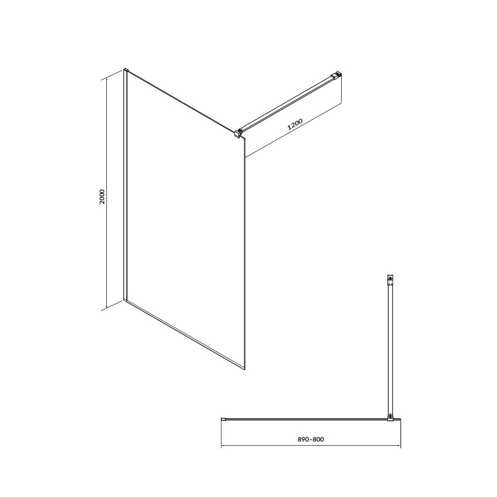 Cersanit Mille, sprchová zástěna typu Walk-In 90x200 cm, 8mm čiré sklo, černý profil, S161-008
