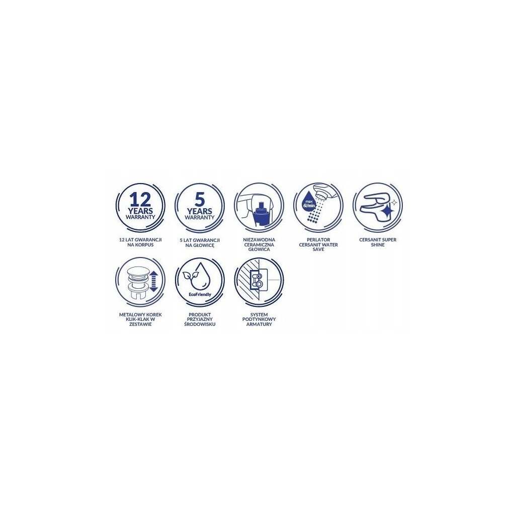 - Typ chromování: Cersanit Super Shine (super lesk) - tloušťka niklové vrstvy 8-12 μm a chromu 0,25-0,3 μm aplikovaného na cersanit baterie, zaručuje vysokou kvalitu povrchu i po mnoha letech používání.