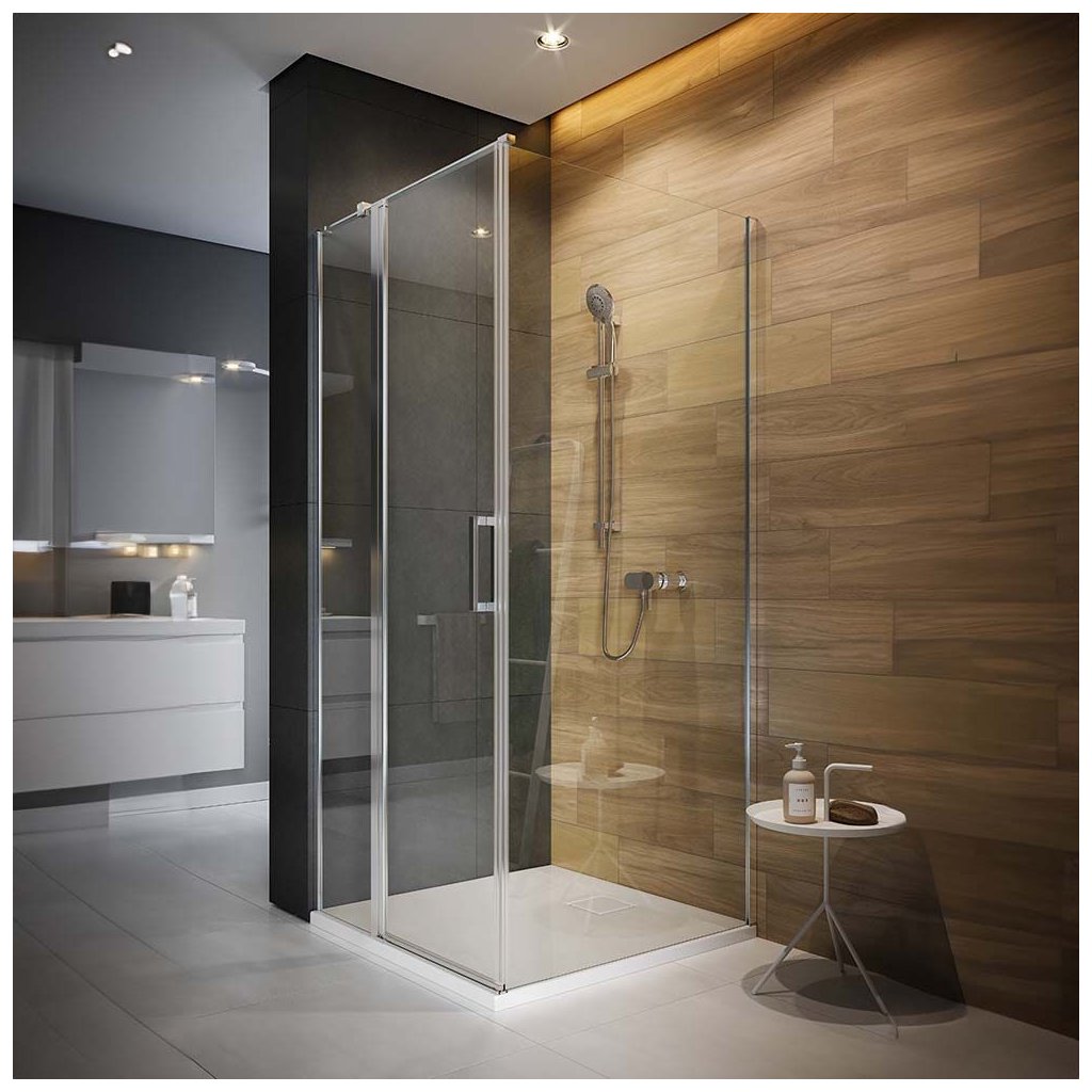 Sprchové dveře do otvoru jsou vyrobeny z bezpečnostního tvrzeného skla o tloušťce 6 mm, které zajišťuje stabilitu konstrukce a garantuje bezpečnost používání. Sklo je vybaveno ochranným hydrofobním povrchem CleanPro, který účinně zabraňuje usazování vodního kamene a nečistot, což umožňuje snazší udržování kabiny v čistotě. Dveře vyrobené z jednoho skla jsou vybaveny funkčním pantem, který umožňuje široký úhel otevření ven a také složení dovnitř kabiny, čímž se šetří místo v koupelně po skončení sprchy. Sloupcový pant má také funkci zvedání a spouštění dveří, díky čemuž se prodlužuje životnost těsnění. Dvoustranné úchyty z vysoce kvalitního kovu kombinují trvanlivost a funkčnost. Profil stěny s regulací zajišťuje větší flexibilitu montáže, protože je uzpůsoben k použití při nerovných stěnách. Magnetická těsnění a prahová lišta zabraňují úniku vody, což zvyšuje pohodlí používání. Produkt je určen k montáži jak v nikách, tak s boční stěnou kabiny nebo dveřmi MODUO. Montáž s vaničkou nebo přímo na podlahu. Otočné dveře se sloupcovým pantem, univerzální montáž, s pravým nebo levým osazením. Profily v barvě lesklý chrom. Sklo transparentní. Výška 195 cm. Vysokou kvalitu produktu potvrzuje dlouholetá záruka.