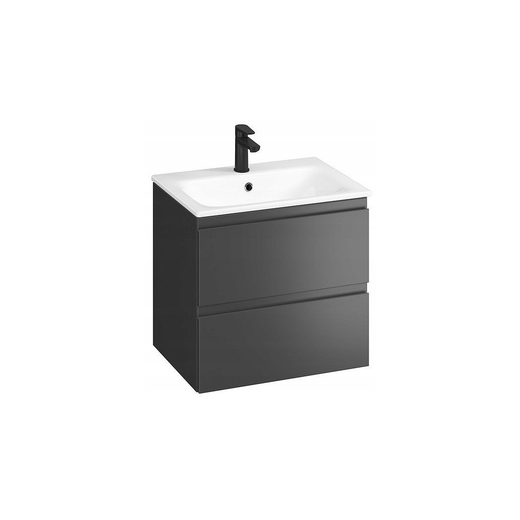 Cersanit Moduo SET, závěsná skříňka 60x45x57 cm + umyvadlo 60cm, antracitová matná, S801-472-DSM