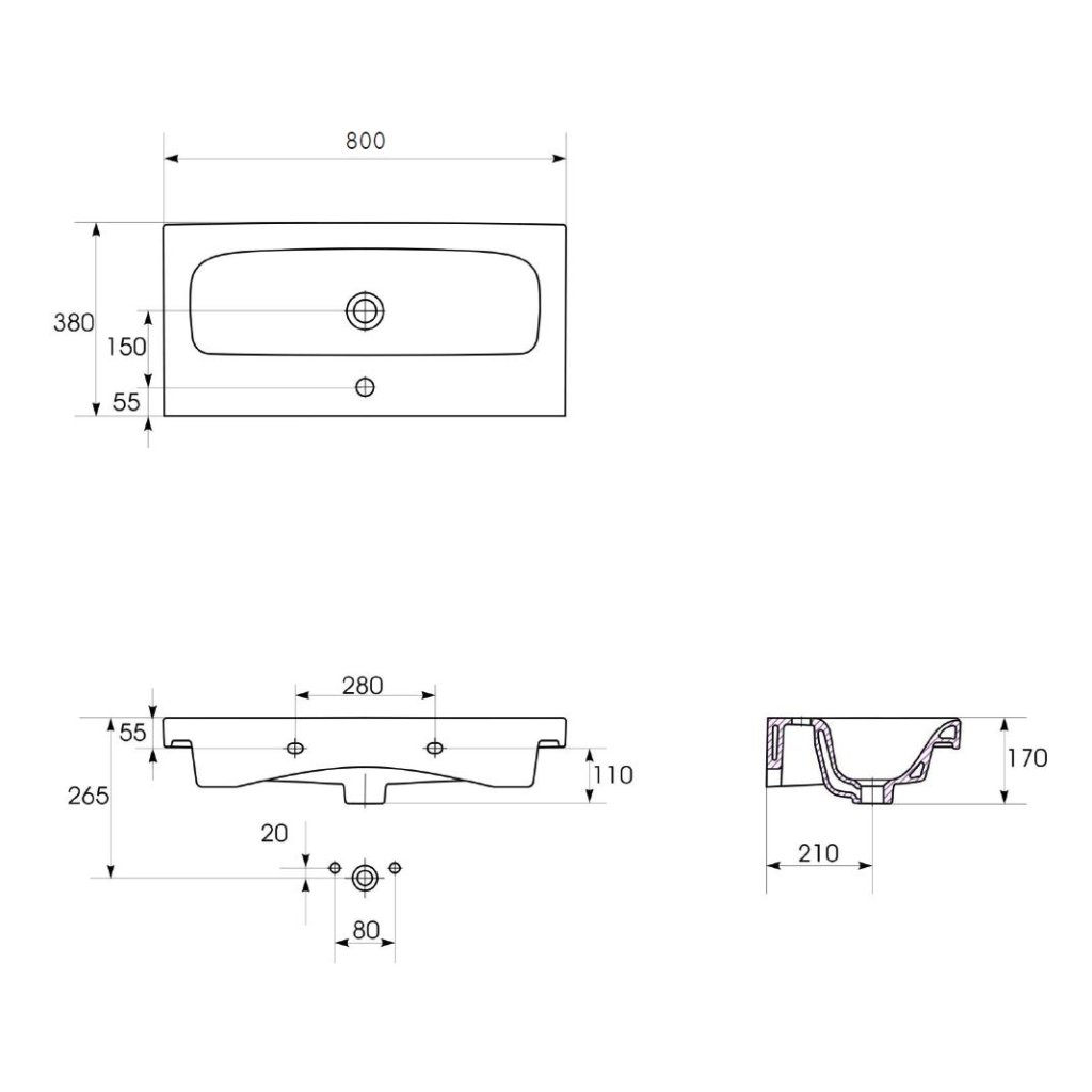 Nábytkové umyvadlo Moduo 80 s přepadem a otvorem pro armaturu. Lze instalovat jen na zeď s ozdobným sifonem nebo kombinovat se skříňkami rádi MODUO v bílé nebo šedé barva. Nabízené zboží se prodává bez baterie a výpusti.