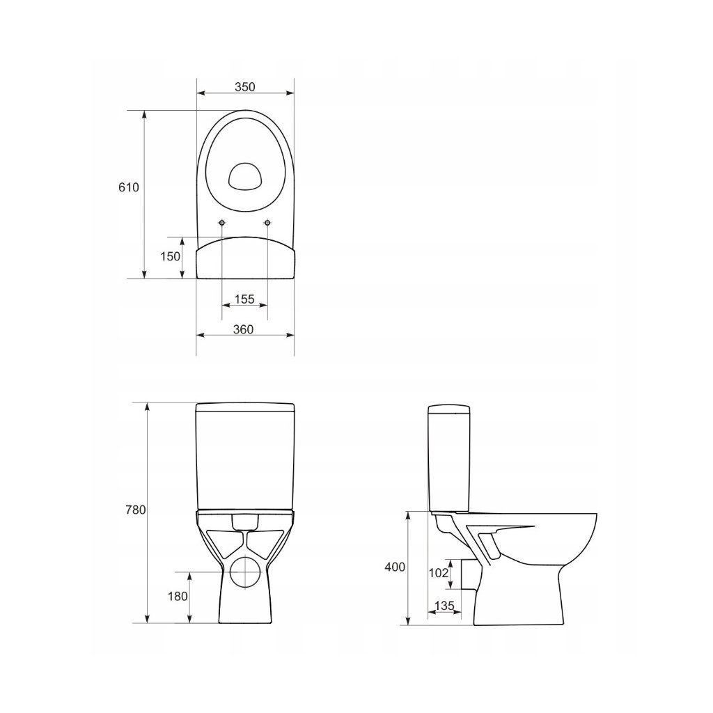 Cersanit Parva, kombi wc s horizontálním odtokem, boční přívod vody a splachováním 3/6L + antibakteriálním sedátkem z doruplastu s pomalým zavíráním, bílá, K27-002