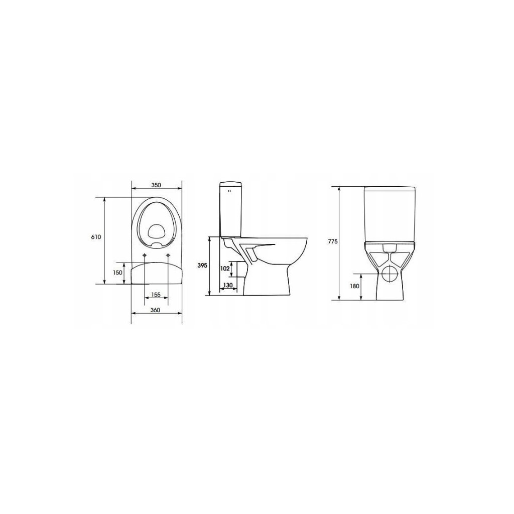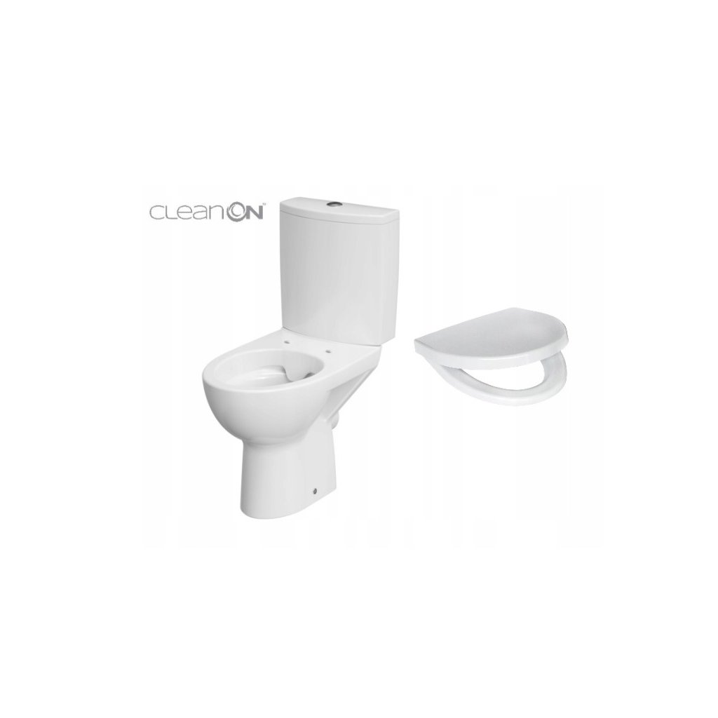 Cersanit Parva CleanOn, kombi wc se splachováním 3/5l, horizontální odtok, přívod vody z boku a antibakteriálním sedátkem z duroplastu, bílá, K27-063