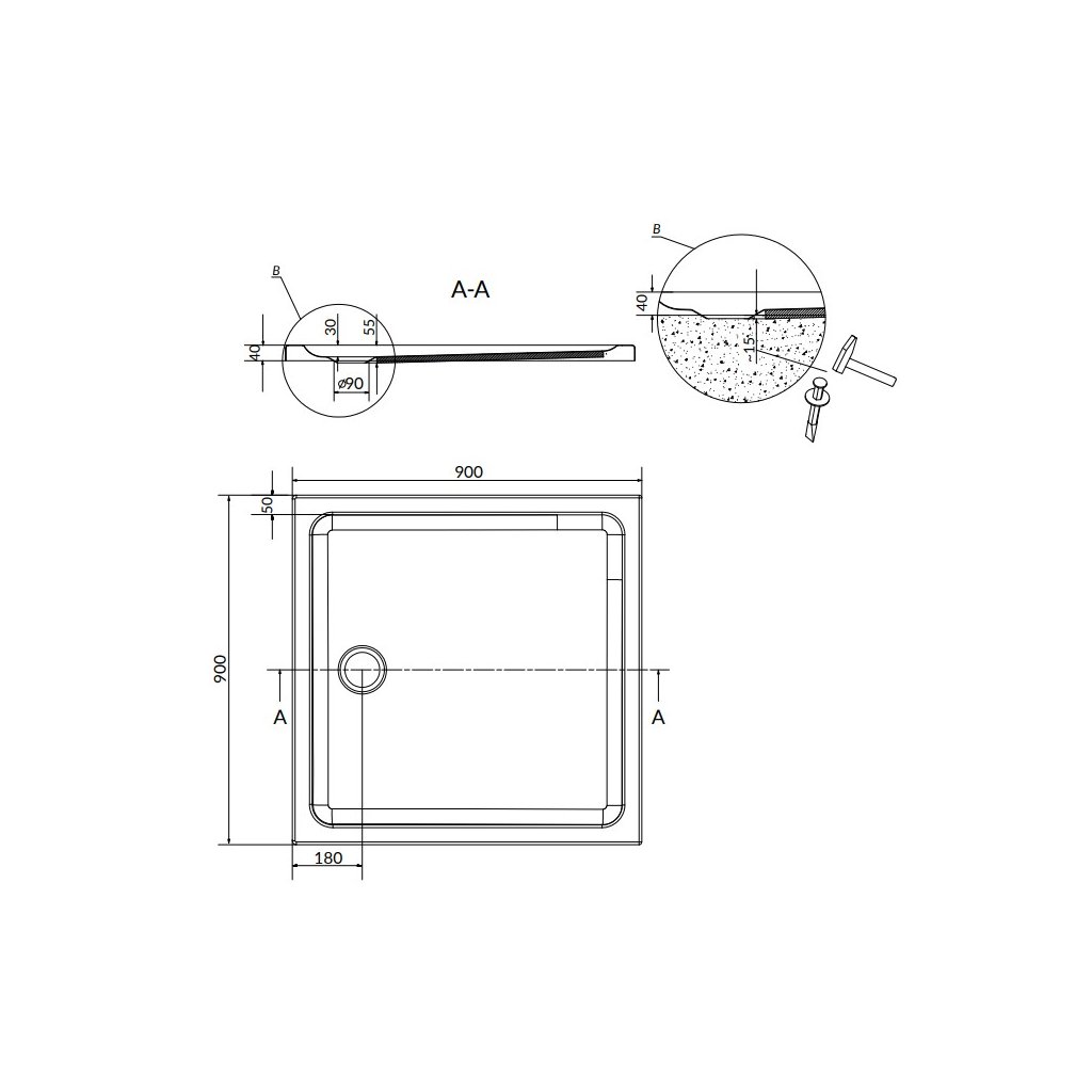 S204-010 sprchová vanička slim TAKO 90x90x4 cm