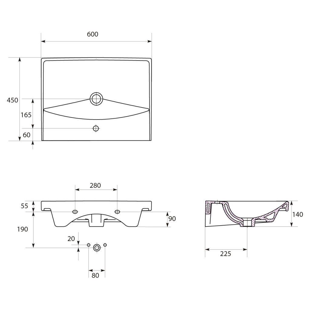 poznámka: Sada sestávající ze skříňky a umyvadla. Sifon a baterie, výpusť nejsou součástí balení.