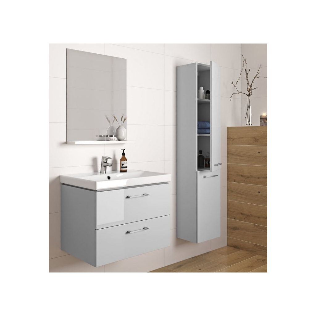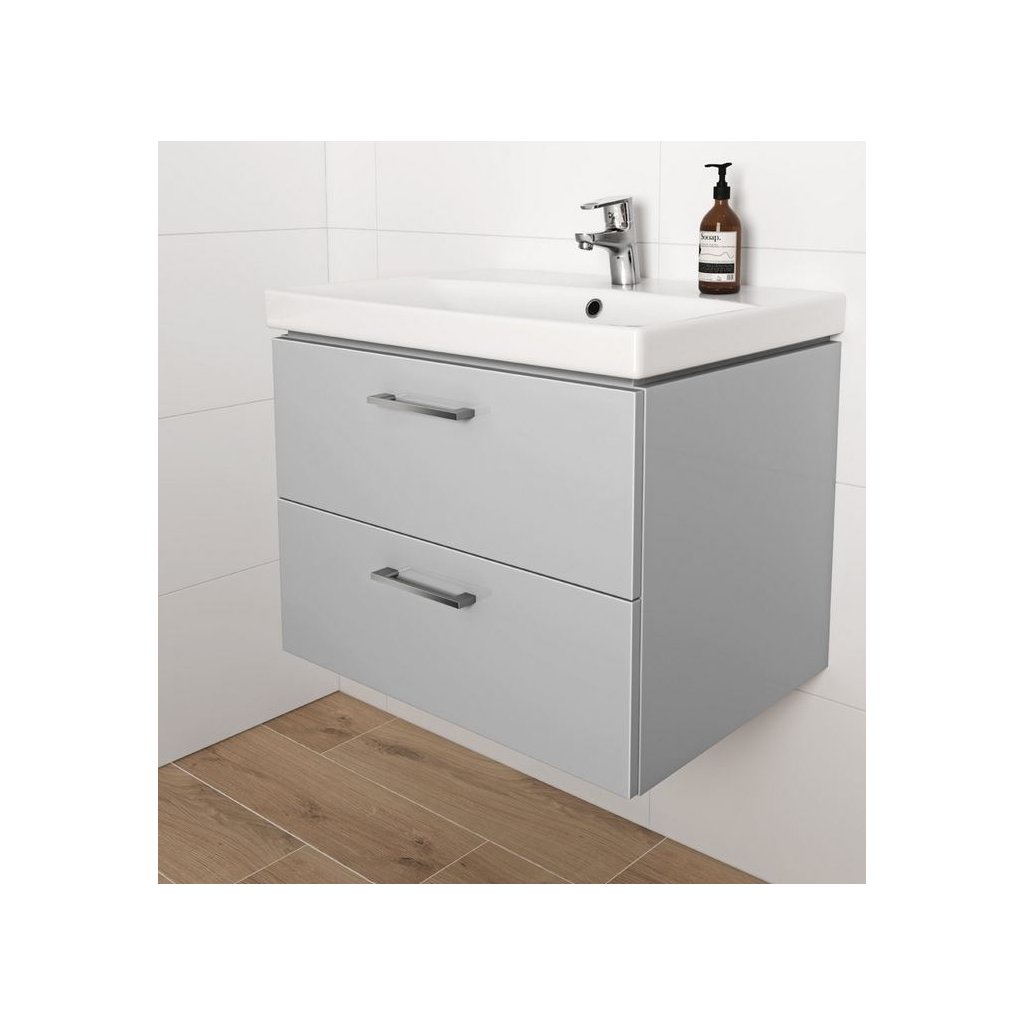 Souprava Cersanit - Lara City 50 (skříňka + umyvadlo) je výborná volba pro ty, kteří chtějí zařídit svoji koupelnu moderně, bez komplikovaných zásahů. Cersanit je známý skvělými řešeními, dostupnými za nízké ceny, a tato sada je toho dobrým příkladem. Skříň v perfektní lesklé šedé barvě je lakovaná, což usnadňuje její udržování v čistotě, jakož i její pochromované úchyty na zásuvky. Výhodným doplňkem je systém pomalého uzavírání, který absorbuje rychlé zavírání zásuvek. Bílé umyvadlo jde dokonale se skříňkou a bude ozdobou každé koupelny. Rozměry závěsné skříňky jsou široké 49,4 centimetrů, vysoké 46 centimetrů a hluboké 39,7 centimetrů.