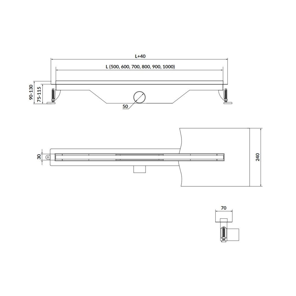 Lineární odtoky TAKO jsou vyrobeny z vysoce kvalitních nejaderných ocelových kyselin odolných vůči chemikáliím nebo odolných vůči chemikáliím. Vestavěný sifon má speciální koš, který umožňuje rychlé čištění odtoku shora a poskytuje rychlý tok vody až do 40 l/min. Sada s lineárním odtokem obsahuje všechny prvky potřebné k její montáži (těsnicí podložka, nohy a sifon).