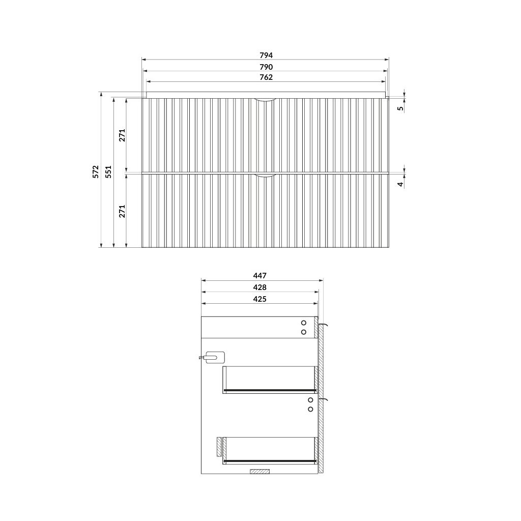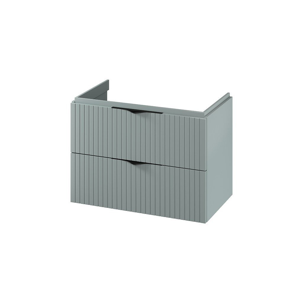 Skříňka je vybavena dvěma prostornými zásuvkami s plným dnem, které poskytují více úložného prostoru pro různé koupelnové doplňky – proto doporučujeme použít prostorově úsporný sifon. Mechanismus měkkého zavírání zaručuje tiché a hladké zavírání, což zvyšuje komfort používání. Přední strana skříňky je vyrobena z rýhované MDF desky foliované v matném provedení, což jí dodává jemnou texturu a elegantní vzhled. Tělo skříňky je laminovaná dřevotříska, také v matném provedení. Výrobek se perfektně hodí k nábytkovým umyvadlům, zapuštěným do pracovní desky, jakož ik umyvadlům na desku, takže se dá snadno přizpůsobit různým koupelnovým uspořádáním. Sada navíc obsahuje dvě sady kovových rukojetí (černá a chromová), které vám umožňují přizpůsobit vzhled skříňky preferencím uživatele. Skříňka je určena pro vlastní montáž, což umožňuje jednoduchou personalizaci a přizpůsobení.
