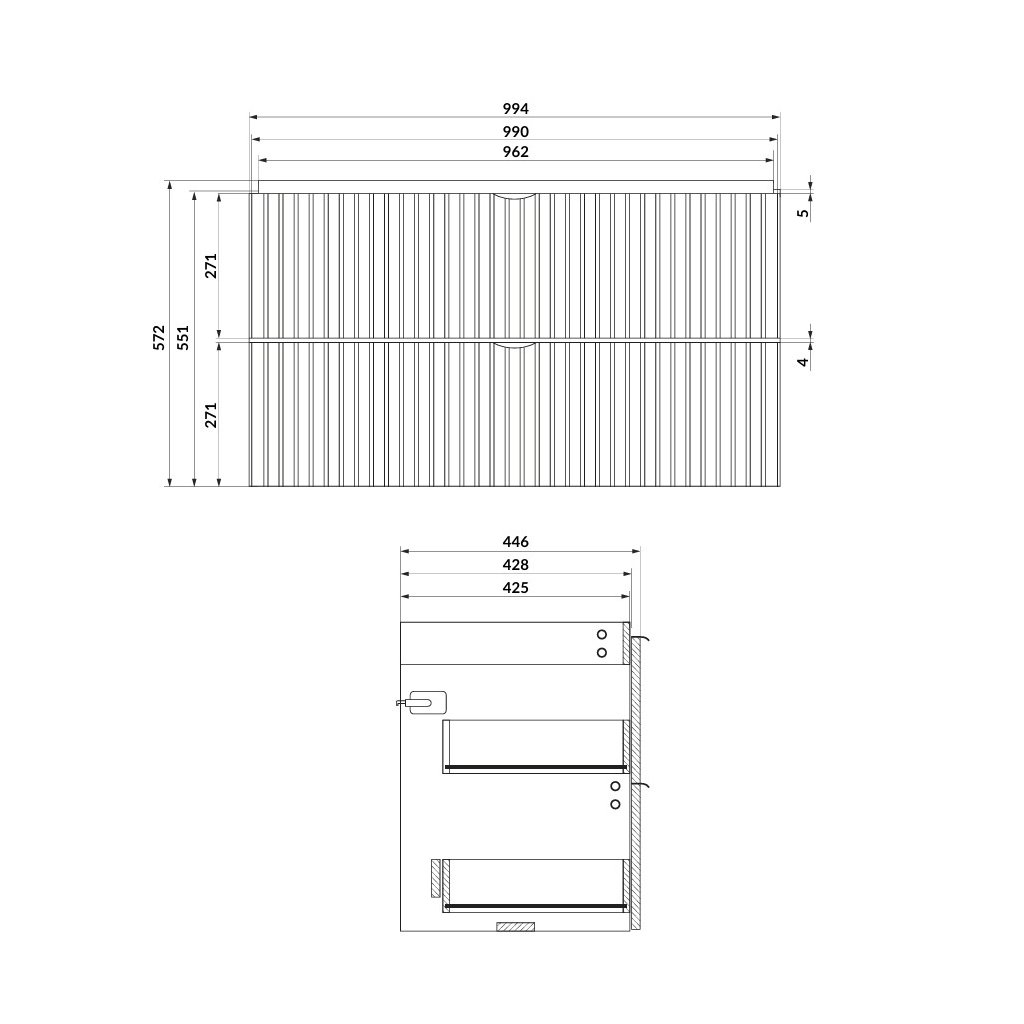 Skříňka je vybavena dvěma prostornými zásuvkami s plným dnem, které poskytují více úložného prostoru pro různé koupelnové doplňky – proto doporučujeme použít prostorově úsporný sifon. Mechanismus měkkého zavírání zaručuje tiché a hladké zavírání, což zvyšuje komfort používání. Přední strana skříňky je vyrobena z rýhované MDF desky foliované v matném provedení, což jí dodává jemnou texturu a elegantní vzhled. Tělo skříňky je laminovaná dřevotříska, také v matném provedení. Výrobek se perfektně hodí k nábytkovým umyvadlům, zapuštěným do pracovní desky, jakož ik umyvadlům na desku, takže se dá snadno přizpůsobit různým koupelnovým uspořádáním. Sada navíc obsahuje dvě sady kovových rukojetí (černá a chromová), které vám umožňují přizpůsobit vzhled skříňky preferencím uživatele. Skříňka je určena pro vlastní montáž, což umožňuje jednoduchou personalizaci a přizpůsobení.