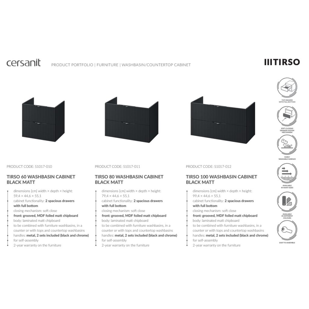 Cersanit Tirso, závěsná skříňka pod umyvadlo 994x447x572 mm, černá matná, S1017-012