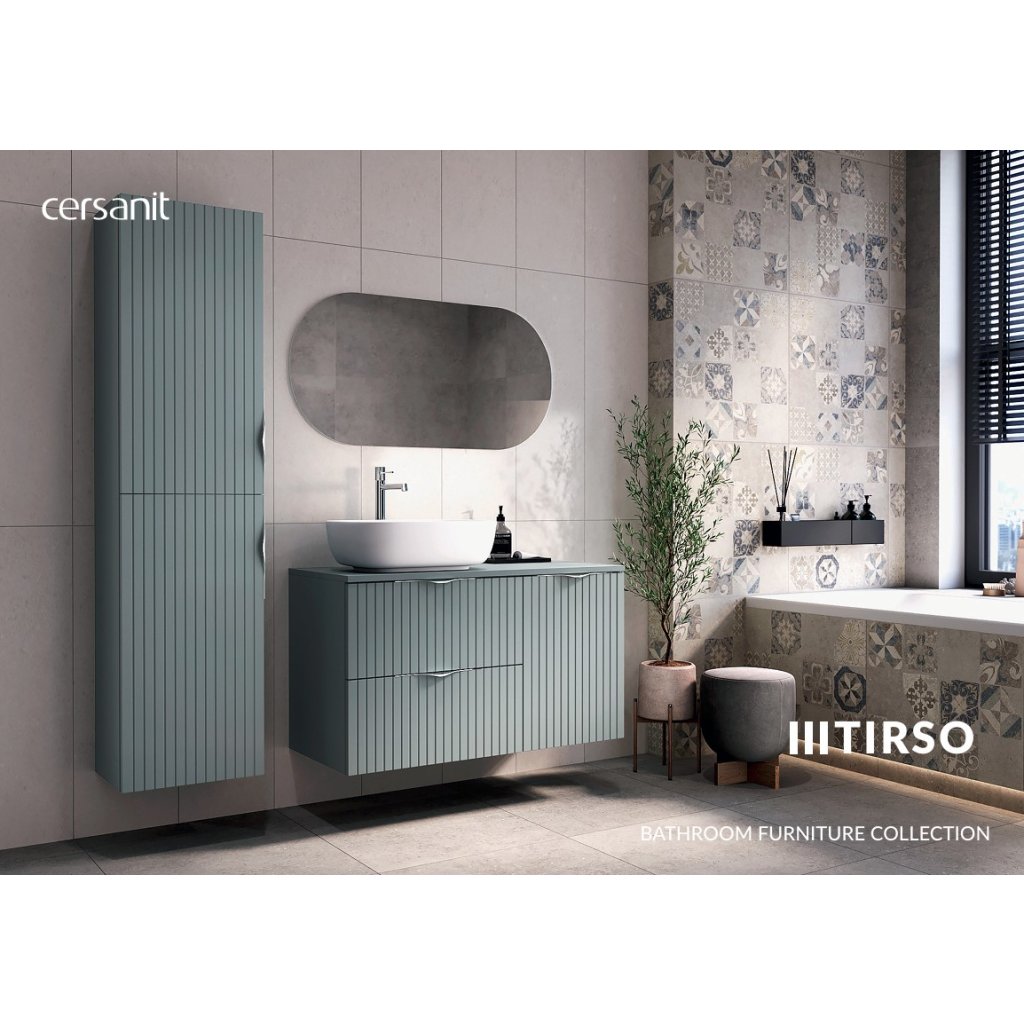 Kolekce koupelnového nábytku TIRSO představuje promyšlený koncept, který se díky kombinaci stylového designu a funkčních řešení stává ideálním návrhem pro ty, kdo hledají maximální pohodlí. Estetický koncept zachovaný v minimalistickém stylu umožní svobodu uspořádání v každé koupelně. Modularita nábytku umožní optimální hospodaření s prostorem, zatímco jemné žebrování vlnitých povrchů dodá interiéru jemnou expresivitu. Série TIRSO je dodávána v barevných variantách: bílá matná, kašmír matný, fjord a černá matná.