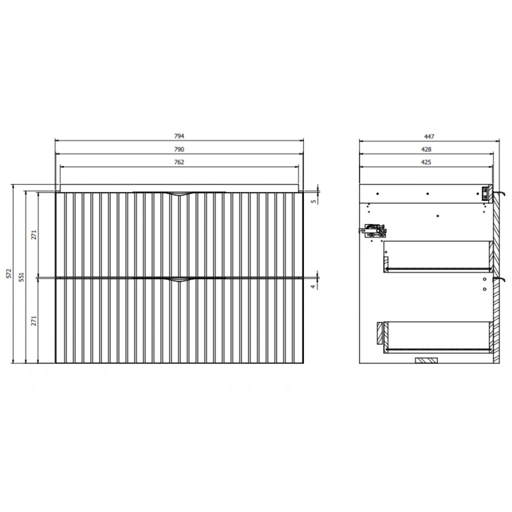 - Materiál čela: drážkovaná, matná MDF deska
