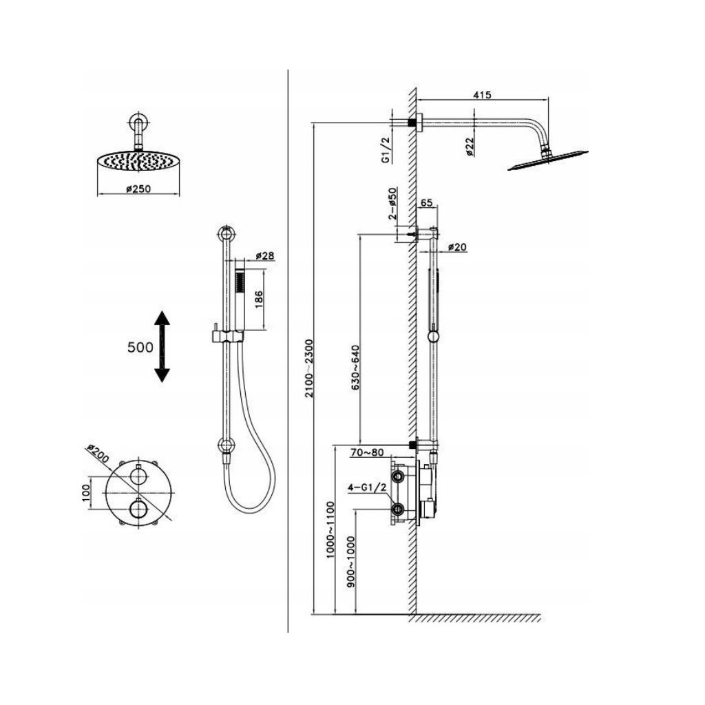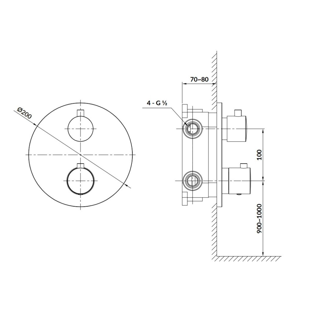 - Typ: dešťová sprchová podomítková baterie s 2-výstupovým tělesem