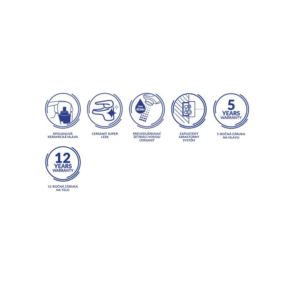 Série ZEN se vyznačuje dokonalou kombinací harmonických tvarů se špičkovým designem, které každému přinesou uklidňující auru do interiéru – bez ohledu na styl nebo velikost. Zajímavým stylistickým doplňkem celé kolekce ZEN jsou moderní držáky baterií zakončené rýhovaným povrchem. O jedinečnosti chromovaných výrobků ZEN svědčí také povrchová úprava armatur, která byla chráněna oděruvzdorným povlakem Cersanit Super Shine. Jednopáková zapuštěná umyvadlová baterie z kolekce ZEN je vybavena ekologickým provzdušňovačem Cersanit Water Save a 25 mm keramickou hlavou, která umožňuje plynulou regulaci vodního proudu. Ekologický provzdušňovač Cersanit Water Save provzdušňuje proud vody, což zvyšuje jeho objem a omezuje odtok vody na 6 l/min. To vám umožní získat silný, silný proud bez maximálního odšroubování kohoutku. Zapuštěná část armatur je moderním řešením ve formě skříňky, která se snadno instaluje a vyměňuje. Na výrobek se vztahuje 12letá záruka na tělo a 5letá záruka na hlavu.