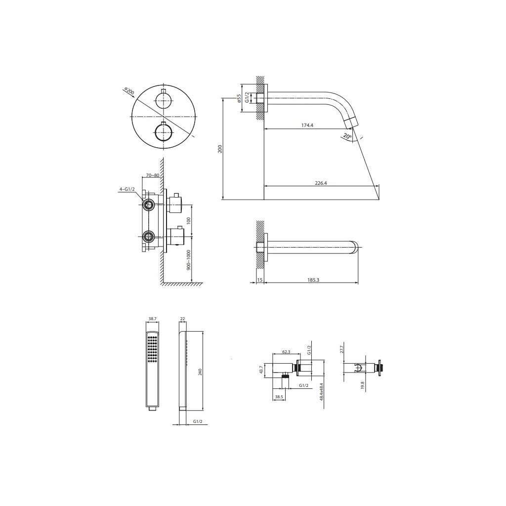 - Hodnota pro třídu průtoku: hlavová sprcha 20,7 a ruční sprcha 19,69