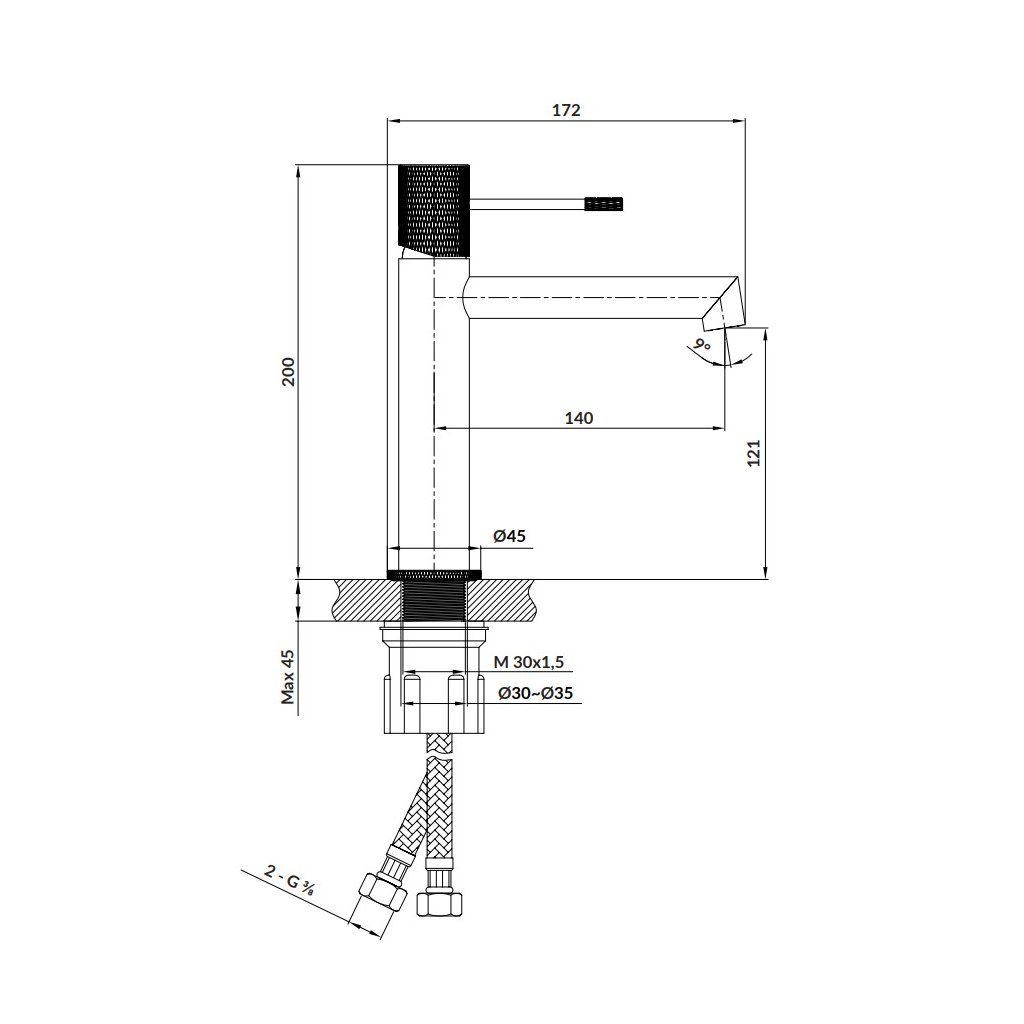 - Připojovací hadice: Flexibilní připojovací hadice g 3/8 palce, délka 600 mm, certifikace Eco EPDM, WRAS