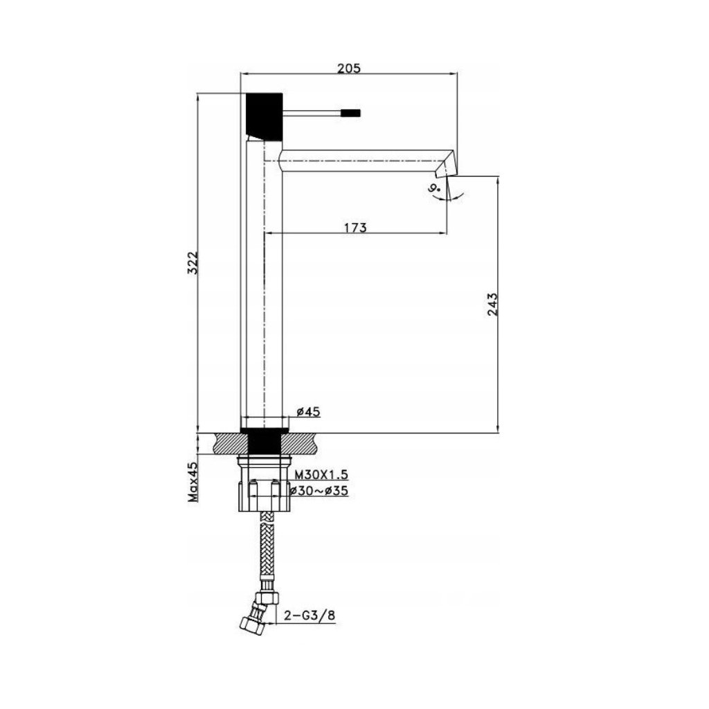 Cersanit Zen, vysoká umyvadlová baterie, černá matná, S951-596