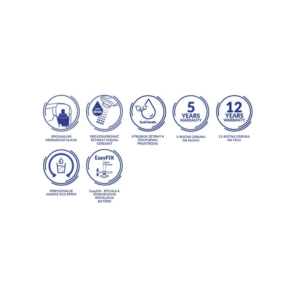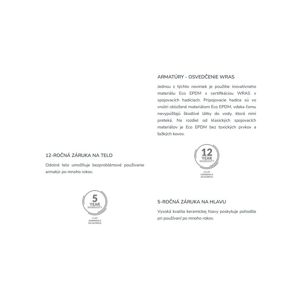 - Záruka: 12 let na mosazné tělo baterie, 5 let na těsnost kartuše, 2 roky na ostatní díly