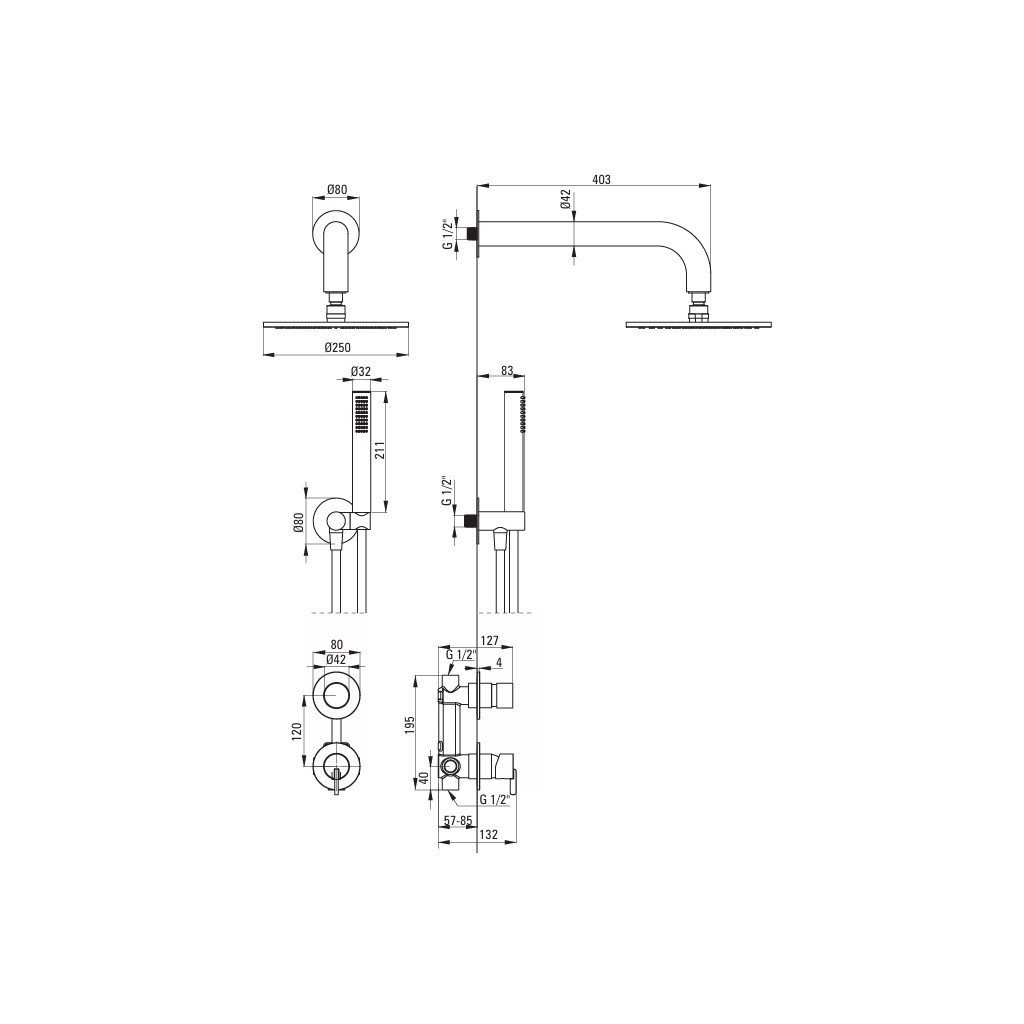 Concealed shower set, with shower head