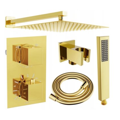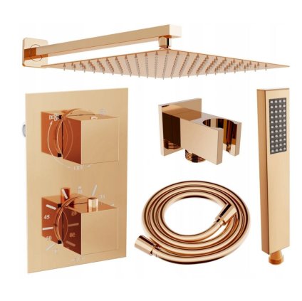 Mexen Cube, podomítková sprchová sada DR02 s dešťovou sprchou 25x25 cm, růžové zlato, 77502DR0225-60