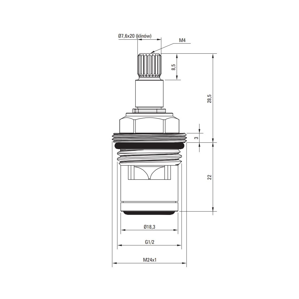 Deante, Keramická kartuše, 90° - teplá voda, DEA-XPCE2GJZ3