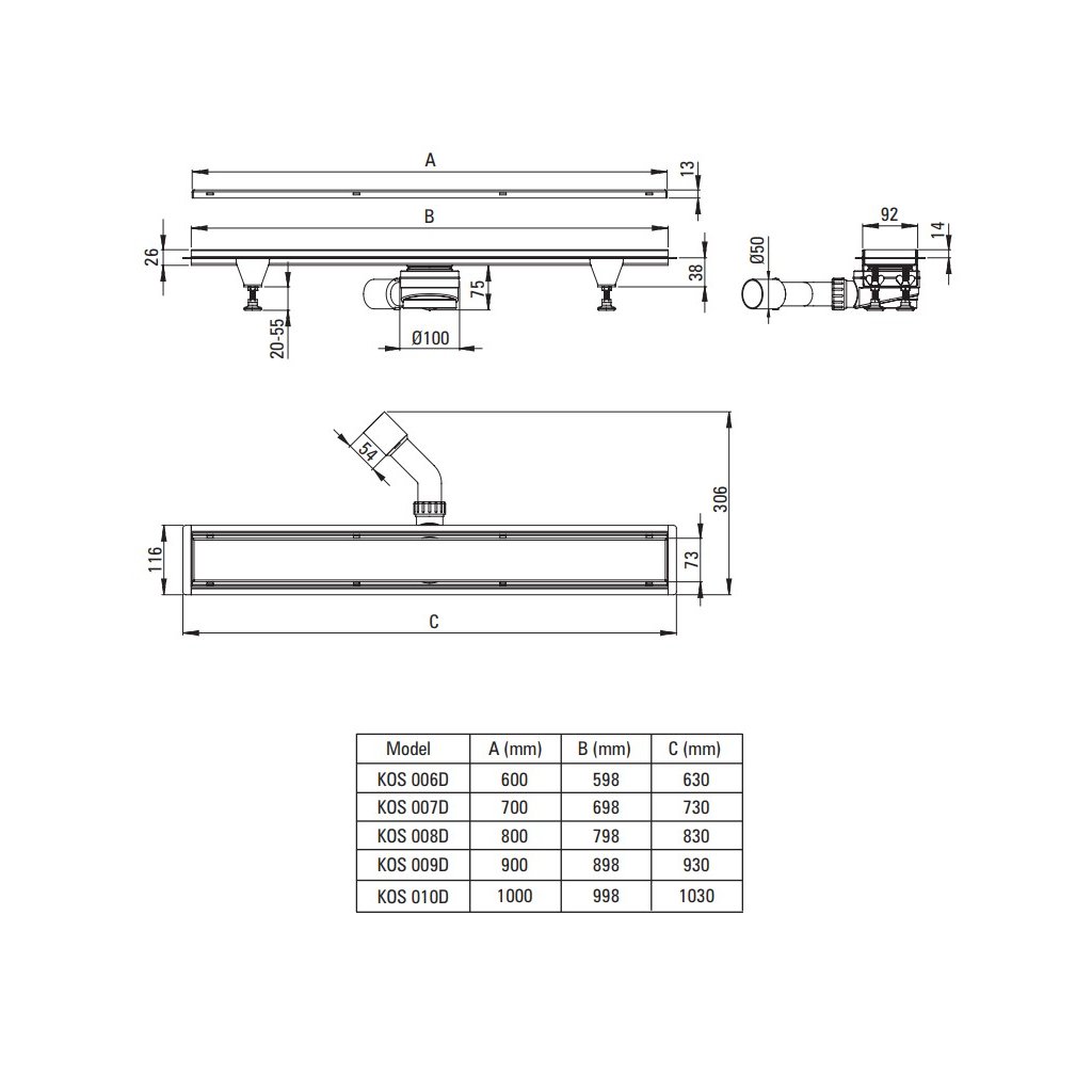 Lineární odtok o délce 60 cm vytváří širokou škálu zajímavých koupelnových aranžmá. Při umístění přímo na podlahu je skvělou alternativou sprchových vaniček. Drenážní systém je vyroben ze spolehlivé nerezavějící oceli, odolné vůči korozi a snadno se udržuje v čistotě. Vpusť je vybavena sifonem o průtoku 54 l/min, proto je možné ji instalovat do koutů s dešťovou nebo hydromasáží sprchou.