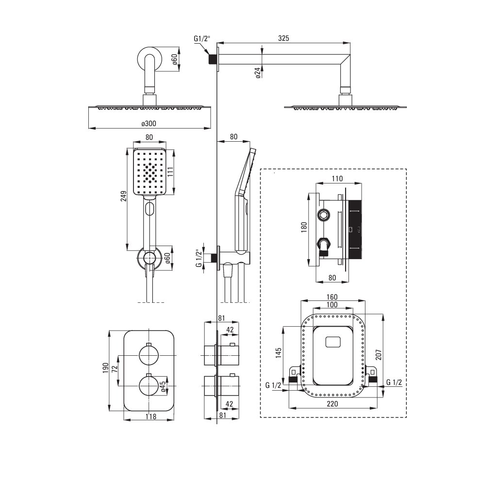 - Typ: podomítková termostatická sprchová sestava + BOX