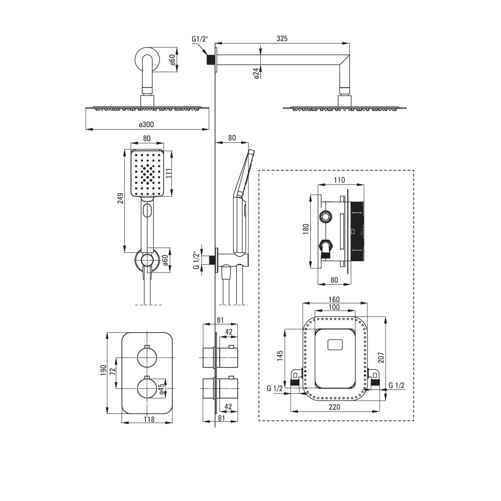 - Typ: podomítková termostatická sprchová sestava + BOX